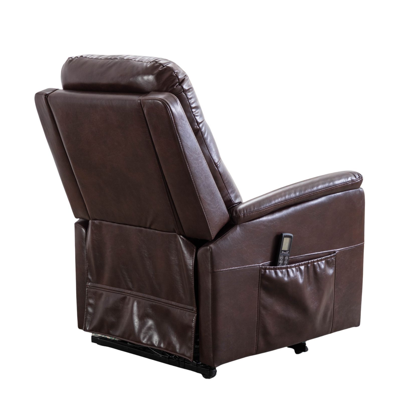 Designed with total comfort in mind, this deluxe power lift chair by Lifesmart is ideal for those who are challenged with stability, back, or leg weakness, to sit down or stand up easily. All in one corded remote control allows you to slowly, smoothly, and safely stand to sit, sit to stand, or recline. This chair also features a power lumbar and power footrest that can be operated independently of the power recline function. There is an inflatable power lumbar to provide added comfort while sitting. Targeted 8 point vibrating massage modes from head to thighs. The lumbar heat feature targets the back to alleviate aches and pains. Store reading material, mobile devices, or TV remotes in the side stitched pocket. The chair is wrapped in soft palomino microsuede fabric. Minor assembly required. Backed by a one-year limited parts warranty.