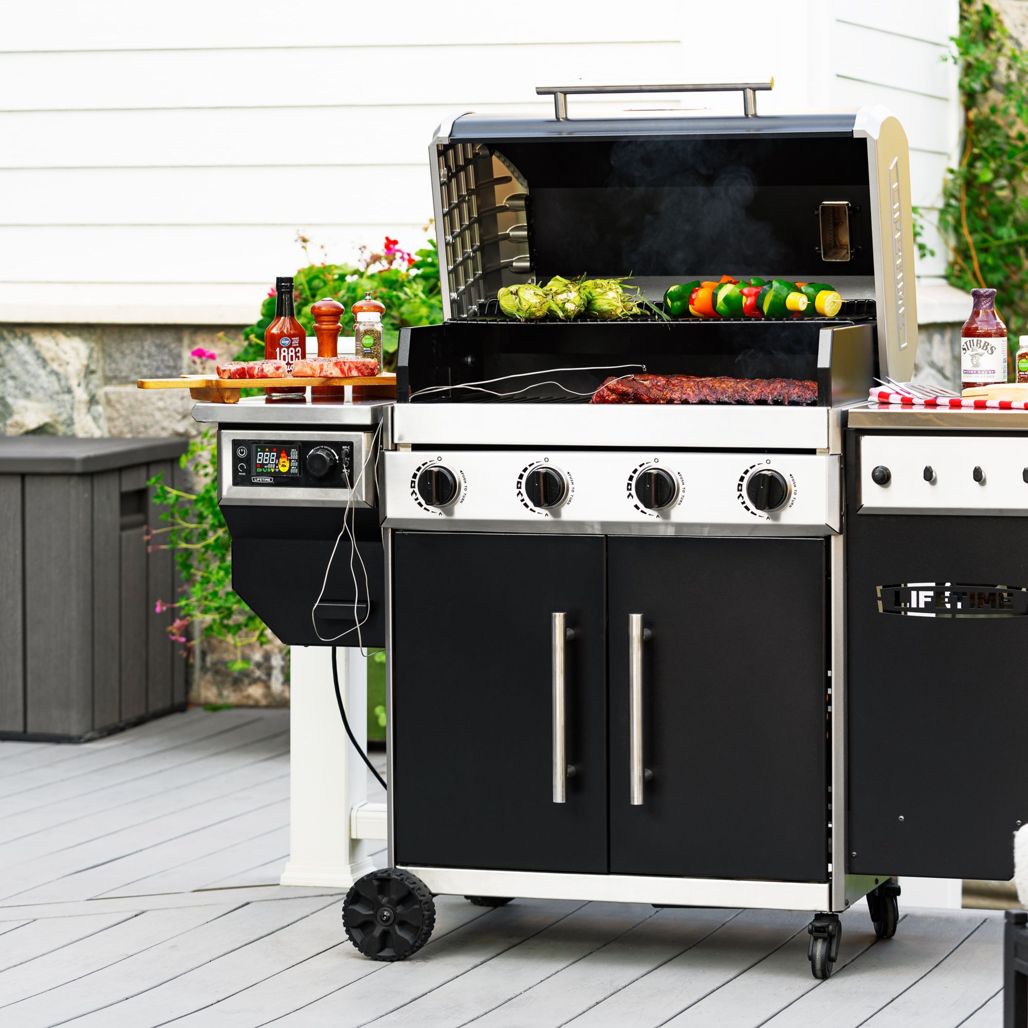 Lifetime 4-Burner Gas Grill and Pellet Smoker - Black