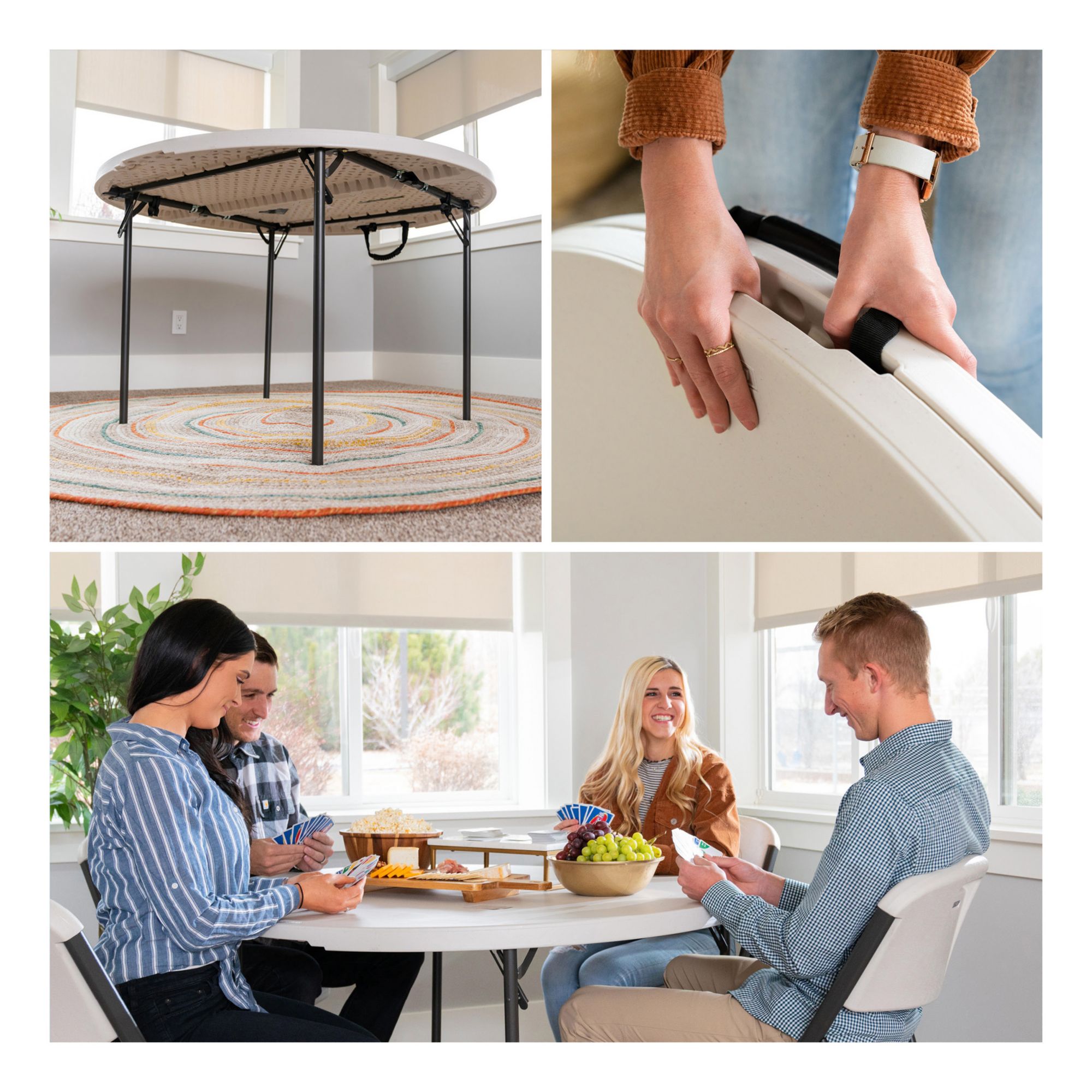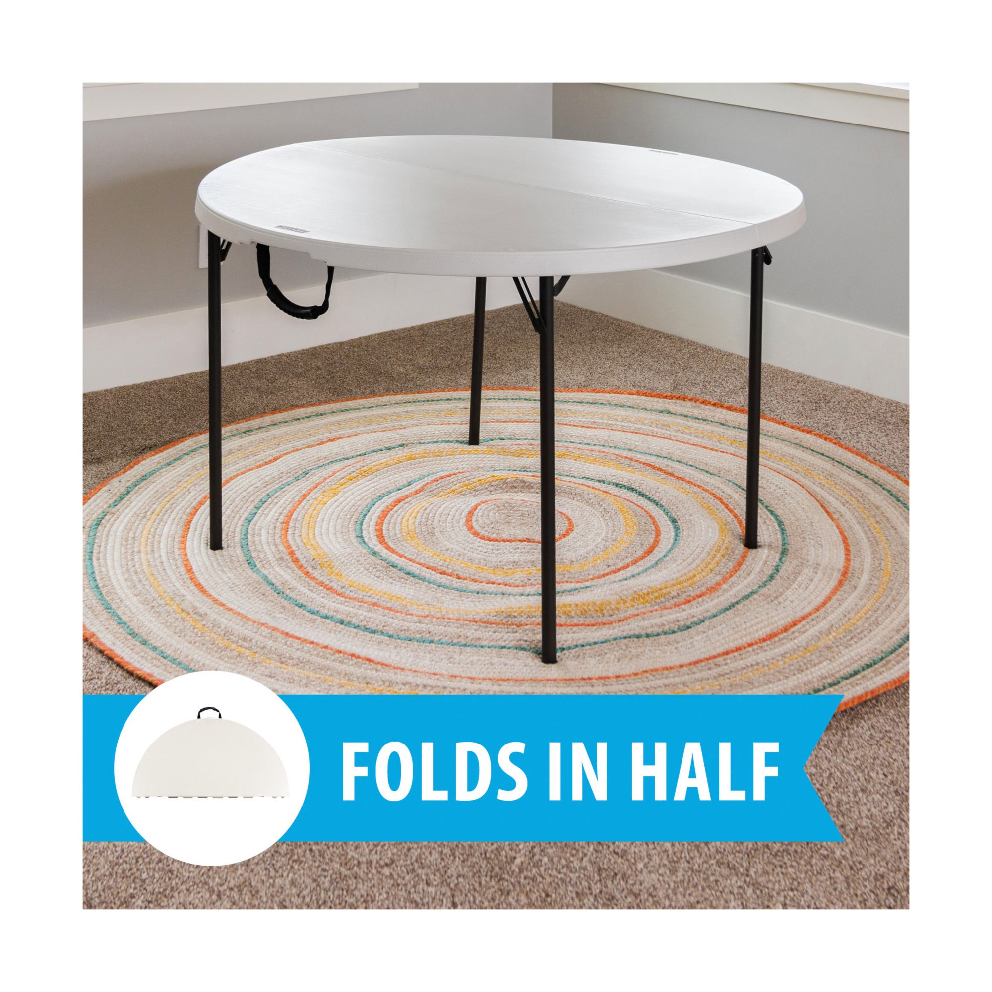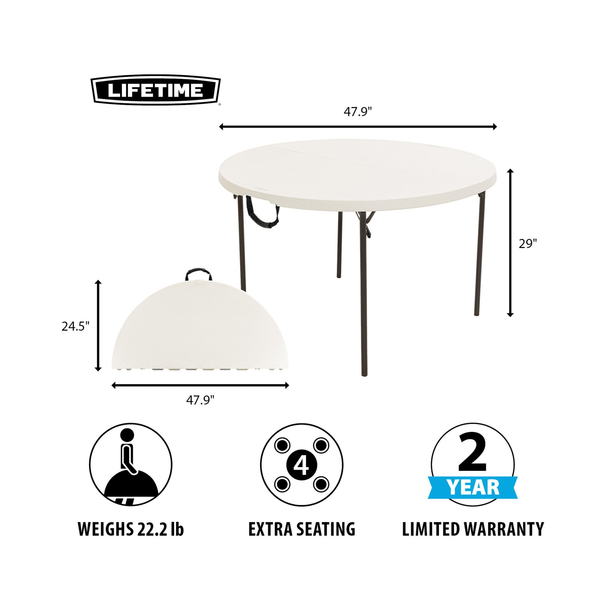 Lifetime 48" Round Light Commercial Fold-in-Half Table - Almond