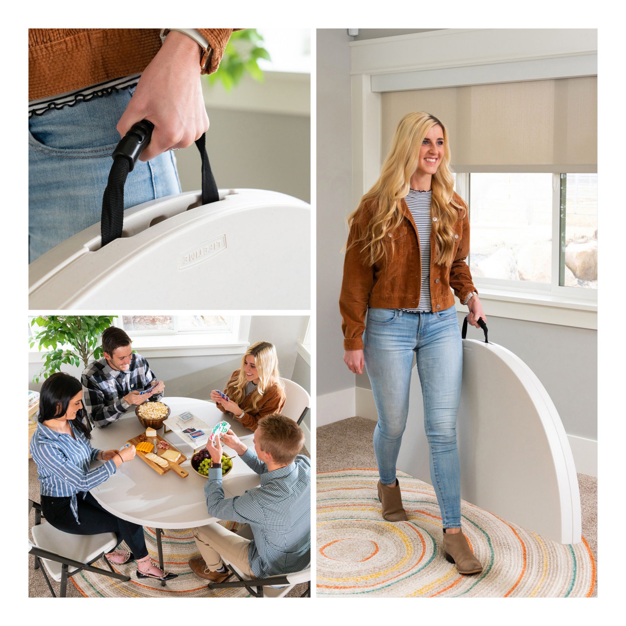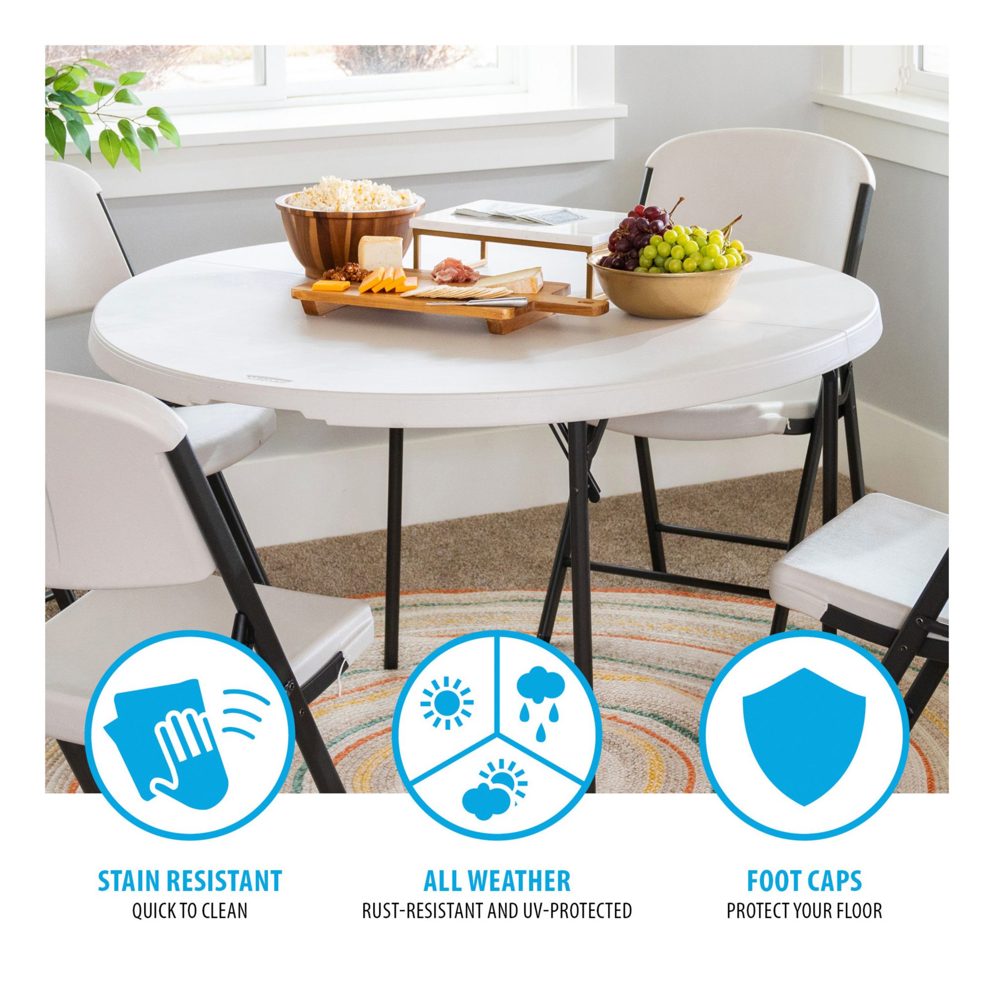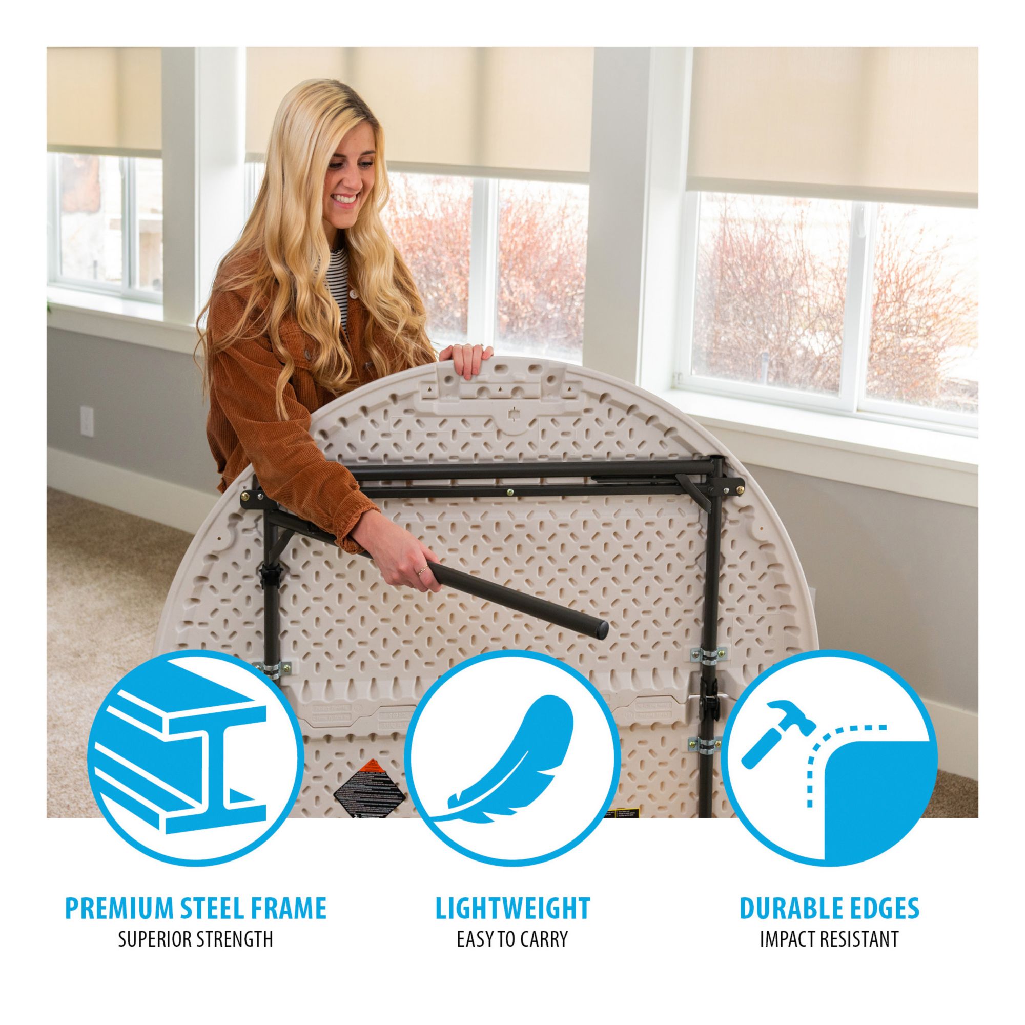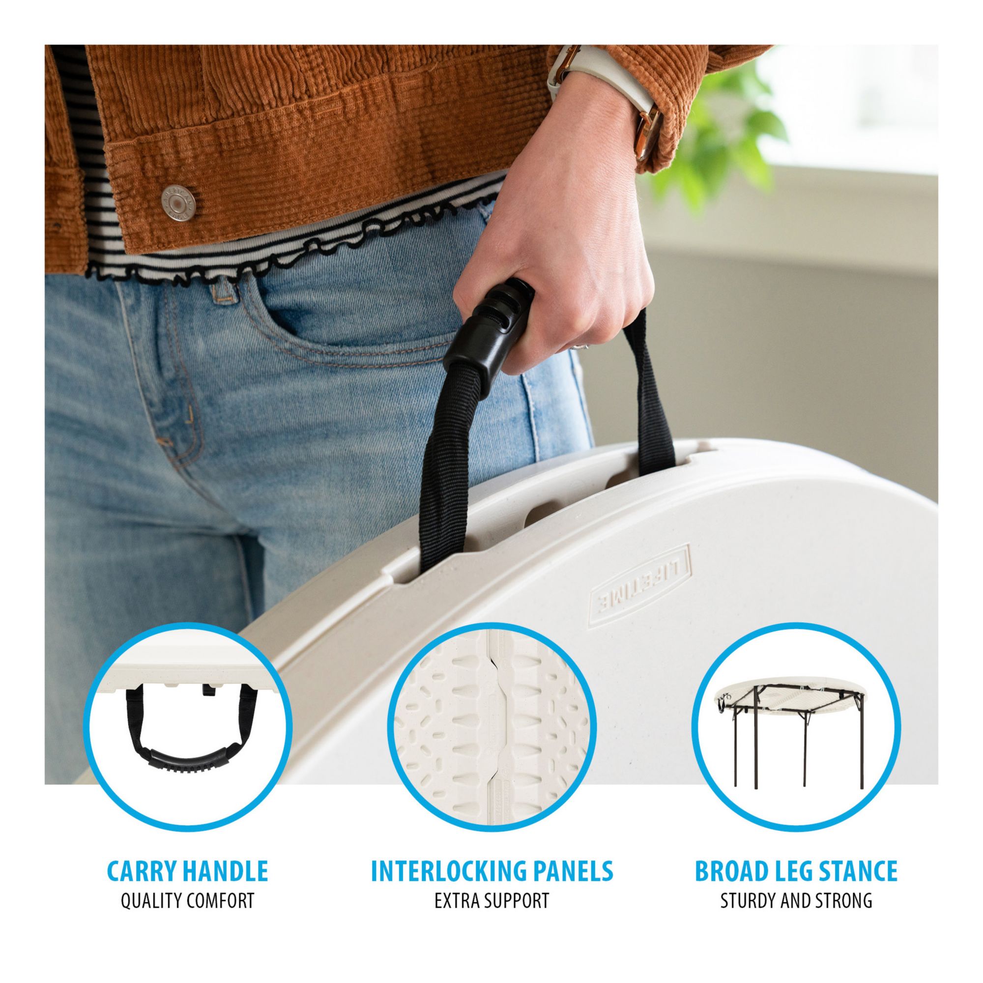 Lifetime 48" Round Light Commercial Fold-in-Half Table - Almond