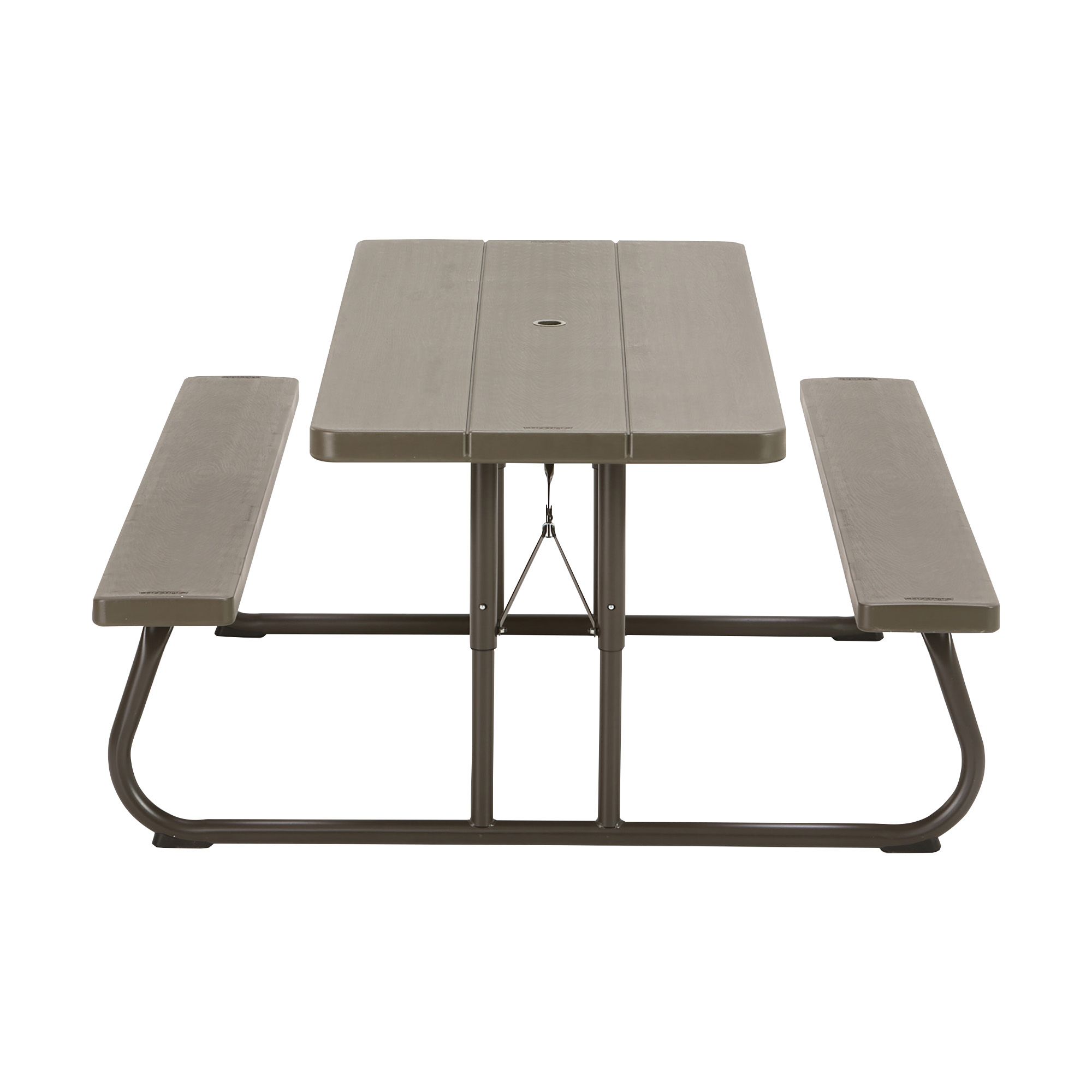 The Lifetime 6' Picnic Table gives you that perfect extra outdoor eating space you've always wanted. Constructed of UV-protected high-density polyethylene and powder-coated steel, the picnic tables are weather and rust-resistant, and will not fade, crack, chip, or peel. Stronger and more durable than wood, they are low-maintenance, stain resistant, and easy to clean. Best of all, Lifetime picnic tables fold completely flat for convenient storage.
