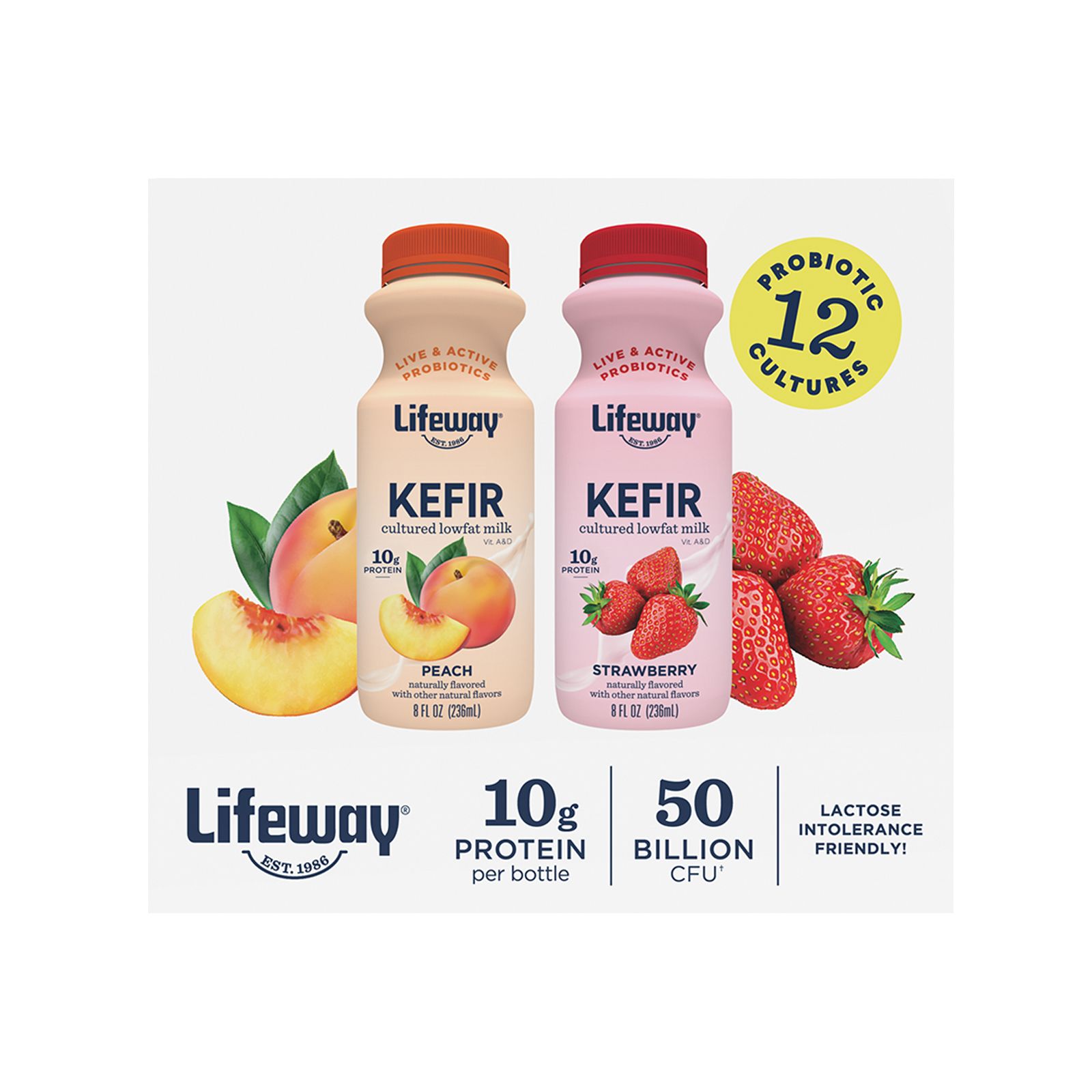 Lifeway Lowfat Kefir, Club Size Variety Pack, Strawberry, Peach, 12 pk./8 oz.