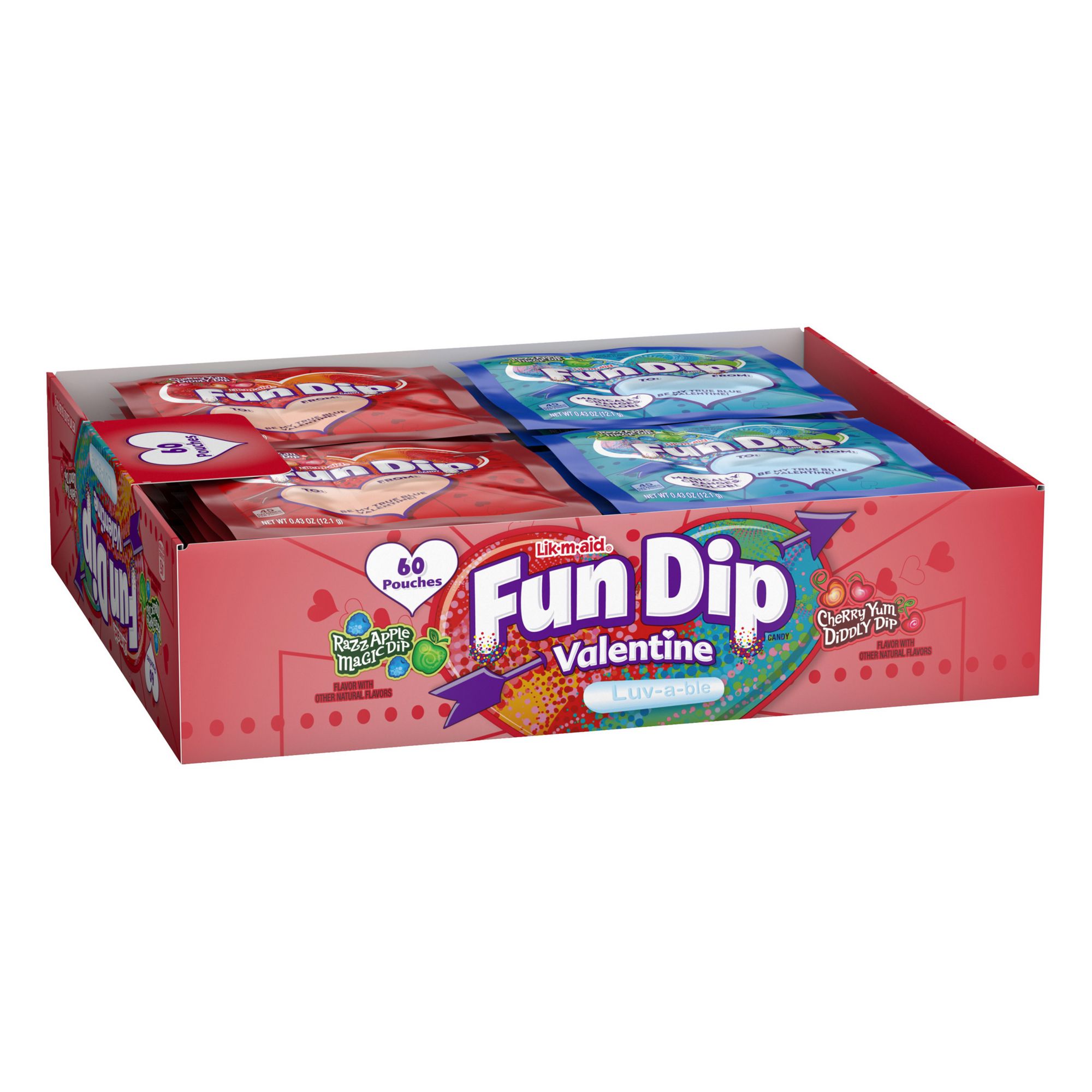 Lik-M-Aid Fun Dip Valentines Day Packs, Cherry Yum Diddly Dip, Razz-Apple Magic Dip, 60 ct.