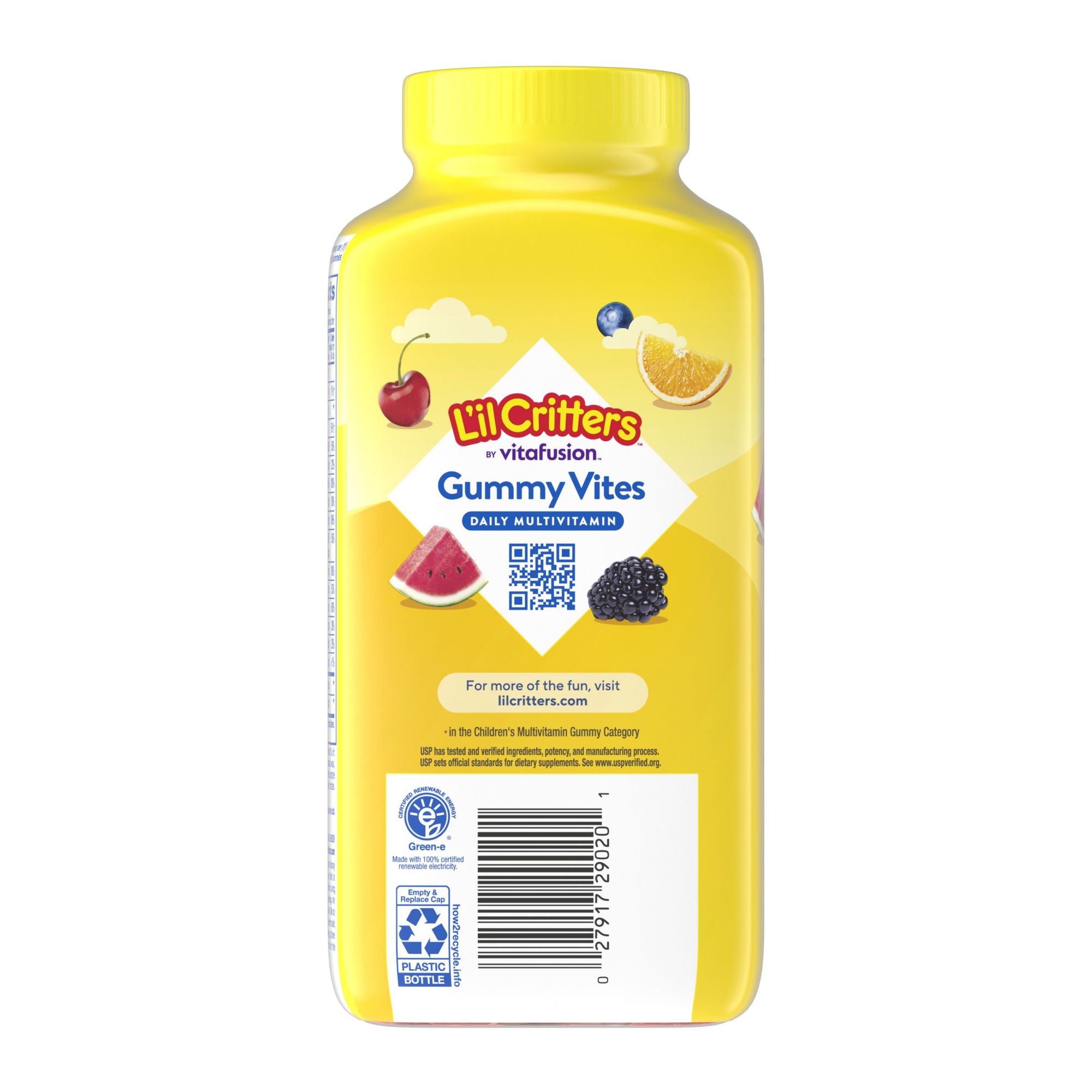 L'il Critters is the Pediatrician Recommended Kids Multivitamin Gummy Brand. L'il Critters Gummy Vites Daily Multivitamin helps support kids health, development and immune system*. Just one little moment of deliciousness every day can help fill nutrition gaps and will please even picky eaters. L'il Critters Gummy Vites deliver 11 essential vitamins and minerals all in a yummy gummy serving, including Vitamin A for eye support*, 5 B Vitamins for cellular energy support*, Vitamin C for Immune Support*, and Vitamin E for antioxidant support*. These daily multivitamins are infused with delicious fruit flavors—cherry, strawberry, orange, plus new bumbleberry and watermelon--making it fun and easy to help give your child the essential vitamins and nutrients they need. L'il Critters Gummy Vites come in fun shapes--bear and new paw--that kids will love without the extras you don’t want – No high-fructose corn syrup, No synthetic FD&C dyes, No dairy, No gluten and No Artificial Sweeteners. With L'il Critters Gummy Vites parents know that no matter how busy things get, they'll have a delicious daily moment to savor with their little ones. These statements have not been evaluated by the Food and Drug Administration. This product is not intended to diagnose, treat, cure or prevent any disease.