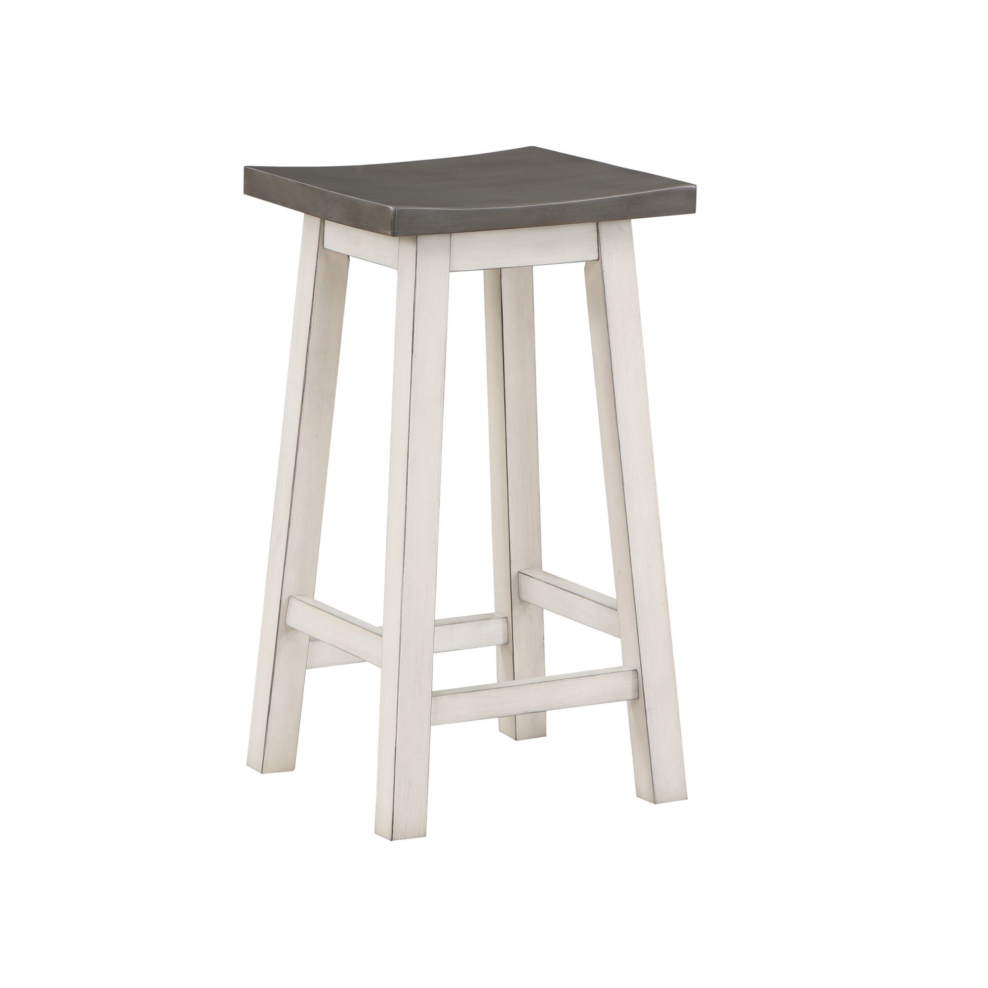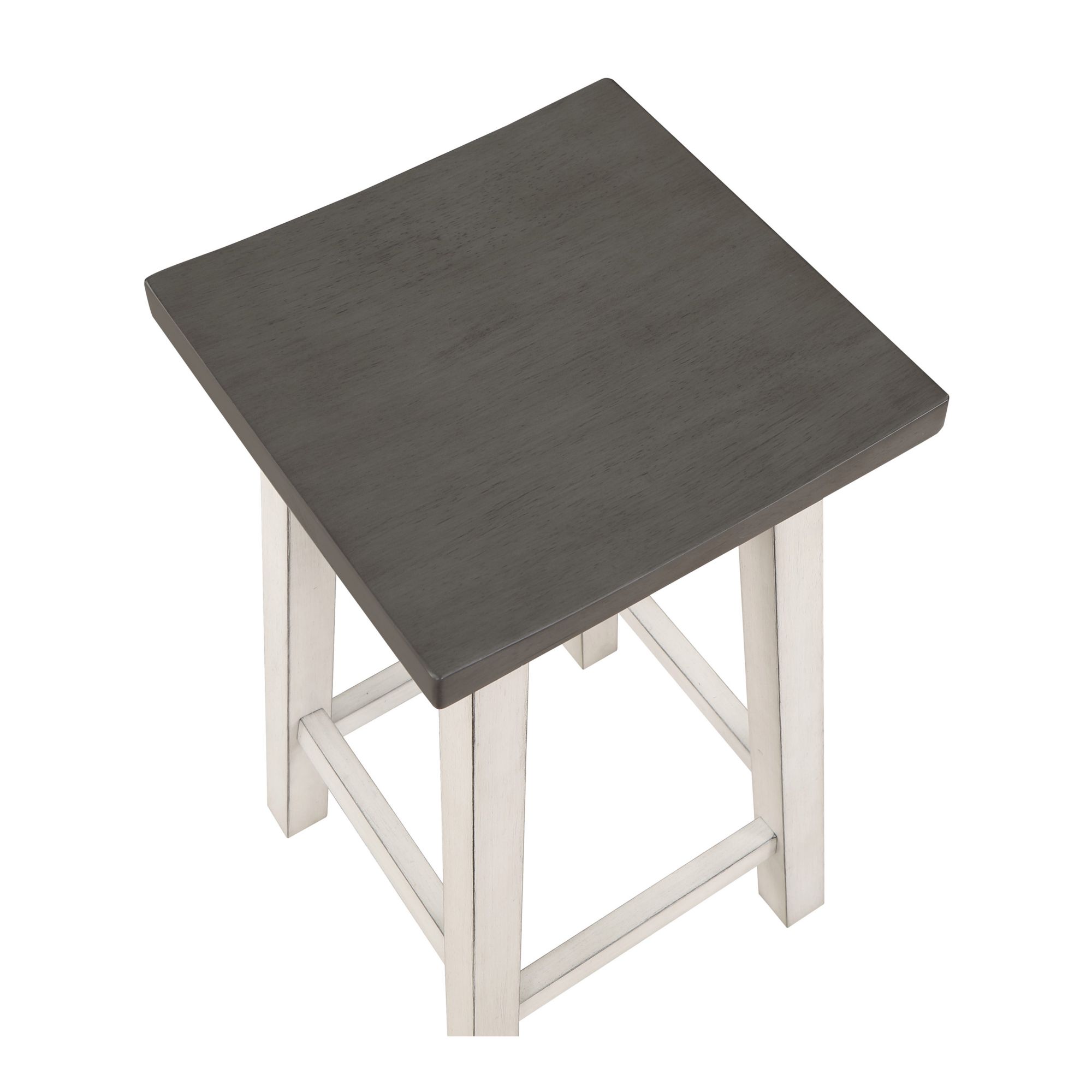 Two armless stools that can be hung under the table to save space
