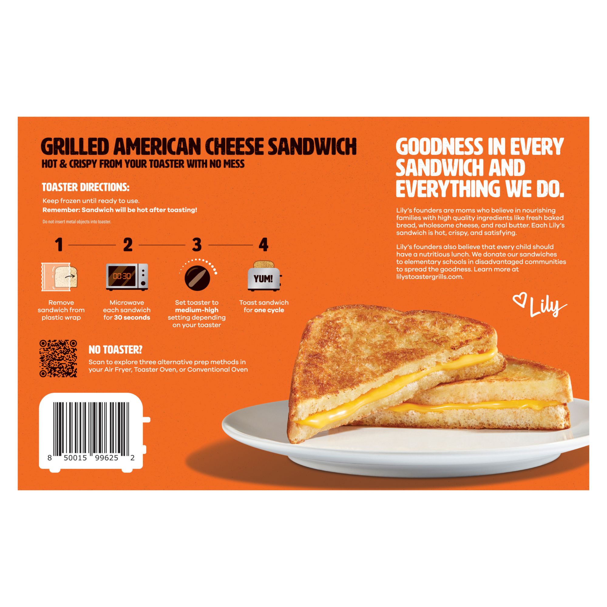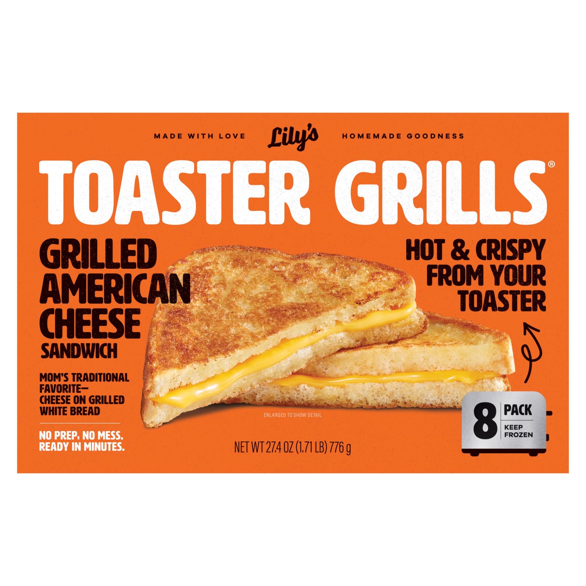 Lily’s Toaster Grills are frozen meals with no prep, no mess and ready in minutes! Lily’s Toaster Grills are delicious, golden, and crispy grilled cheese sandwiches perfect for breakfast, lunch, dinner, snack, really anytime. Lily’s Toaster Grills are a convenient way to enjoy like-homemade grilled cheese sandwiches when you want a comforting meal, quick.