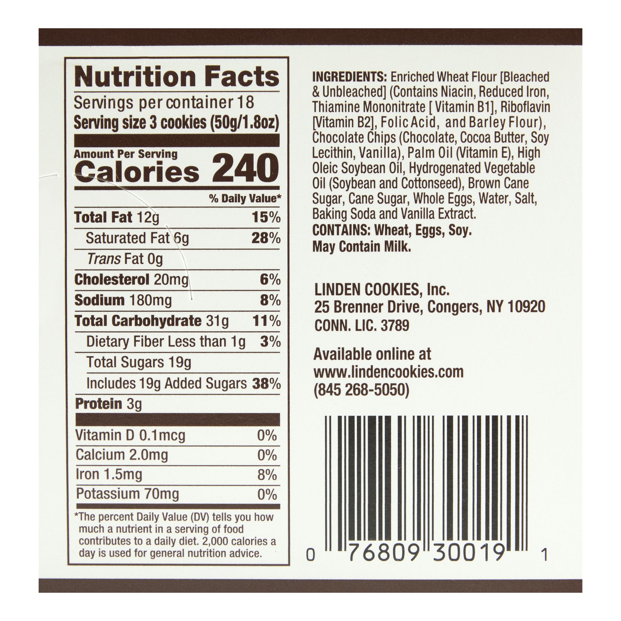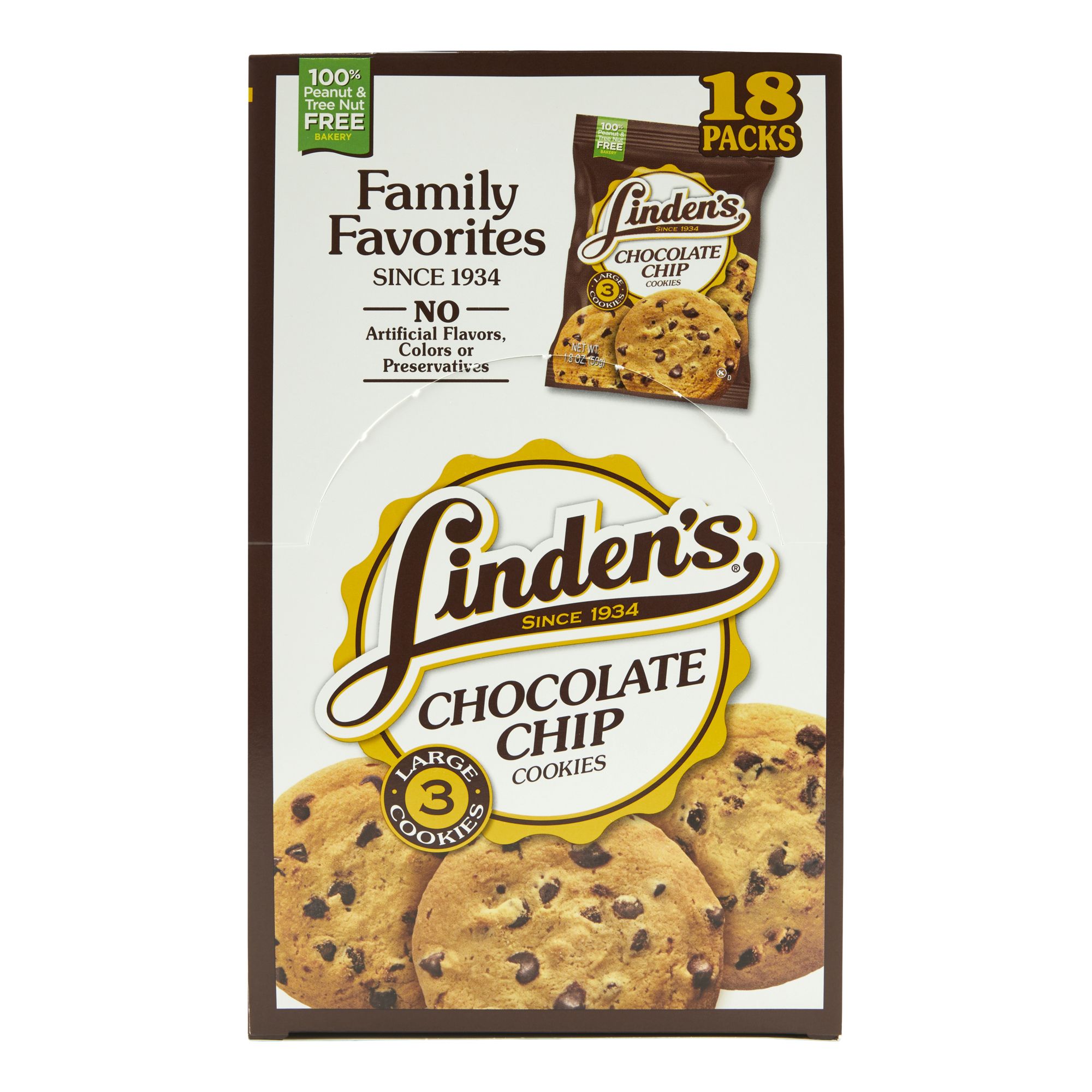 Nut free bakery No artificial flavors No preservatives Perfect snack size Use fresh whole eggs Great for kid's snack Great for vending Great for deli's Product of New York, USA Includes 18 pack of 3-count chocolate chip cookies