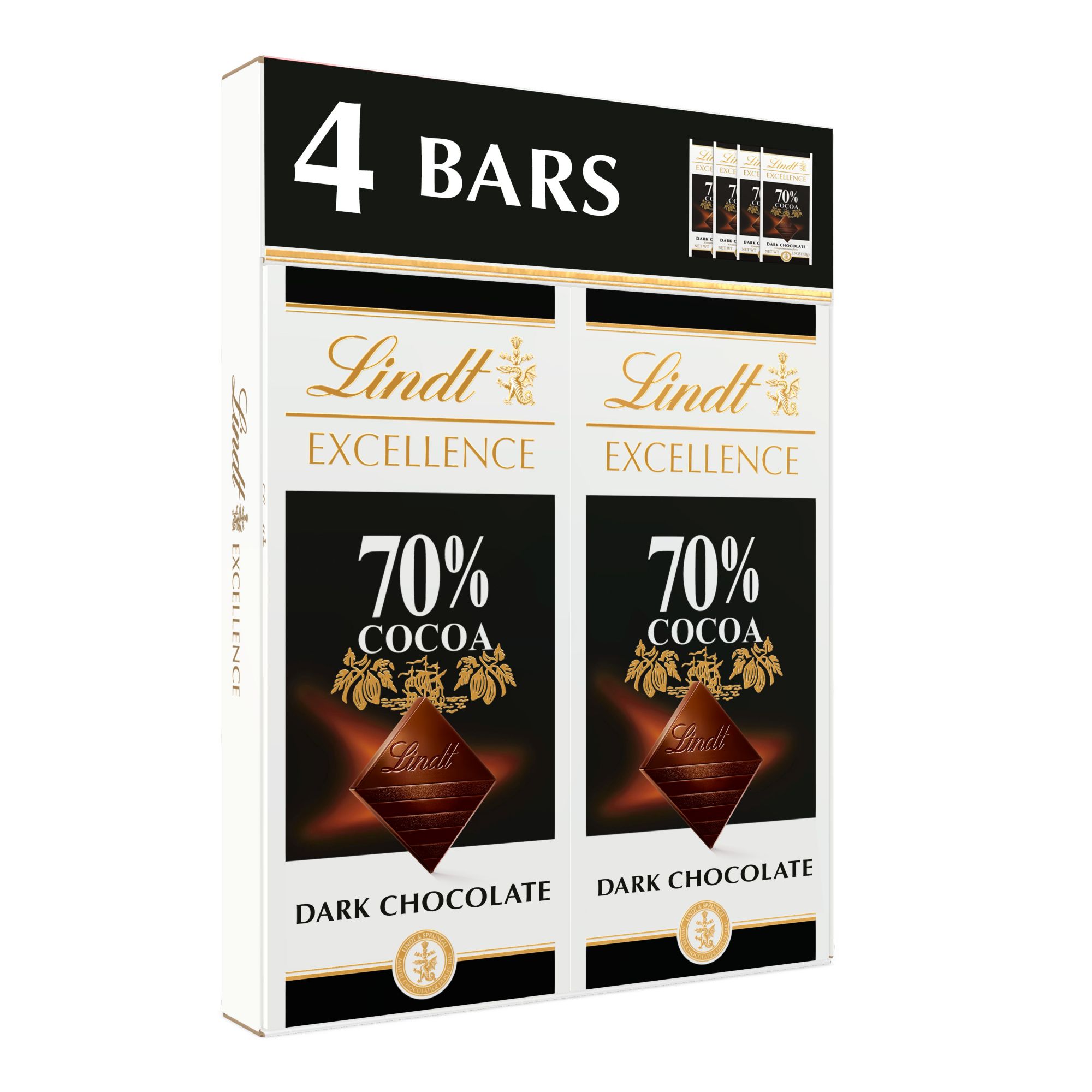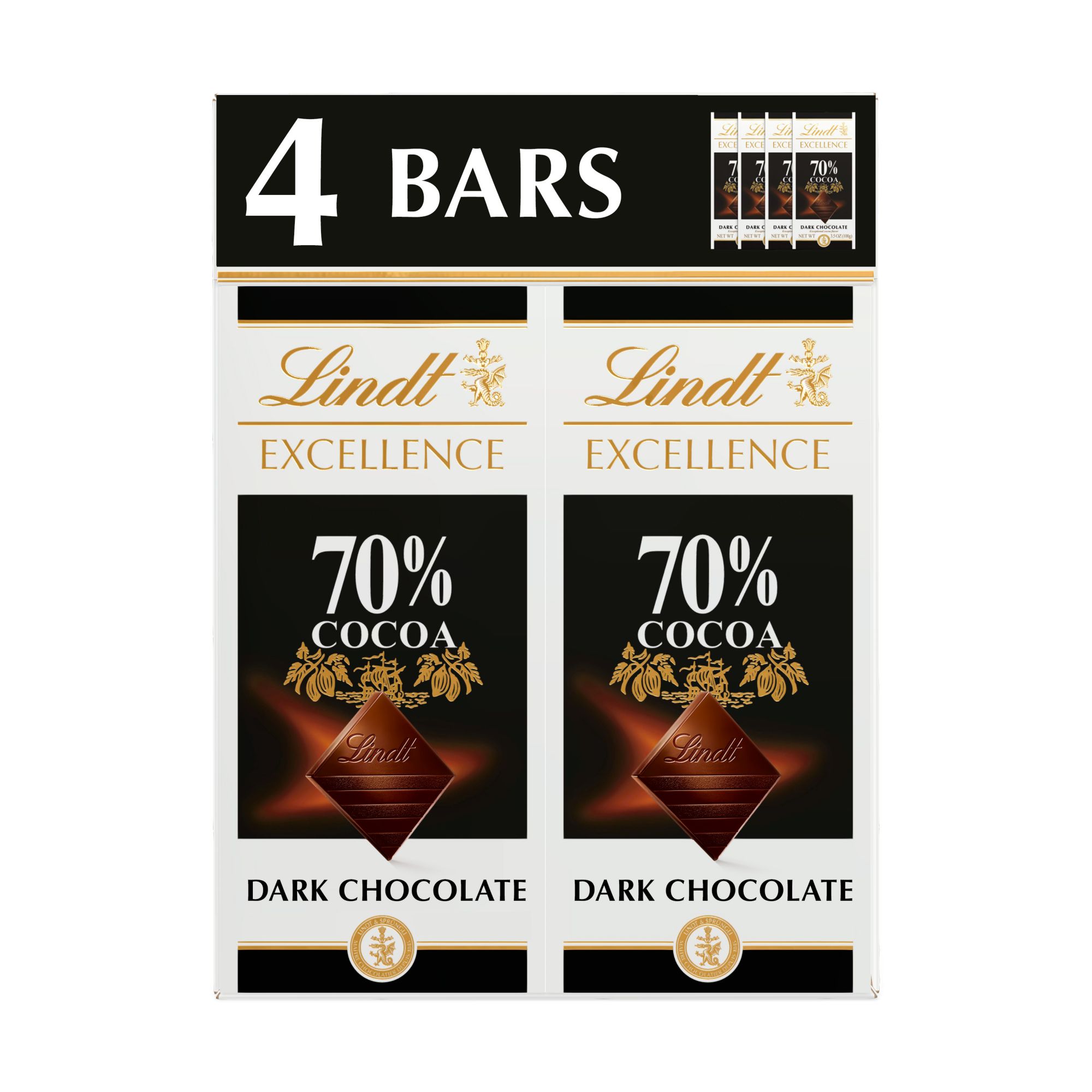 Four 3.5 oz. bars of Lindt Excellence 70% Cocoa Dark Chocolate Bar