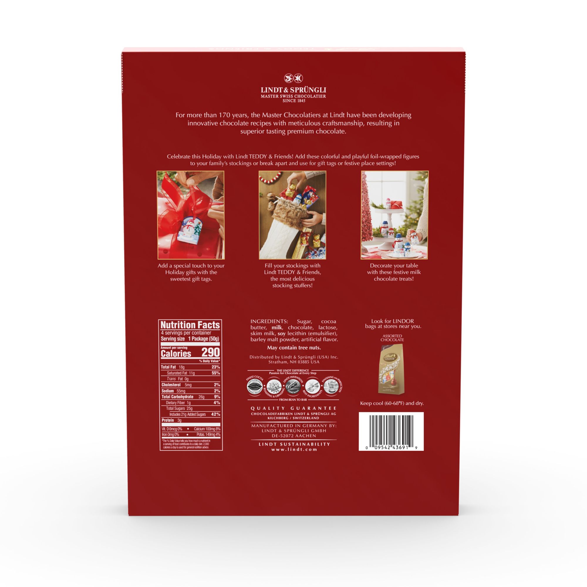 Milk chocolate Created with the premium swiss milk chocolate and dressed in festive foil Lindt delivers a unique chocolate experience with a distinctly smooth taste Lindt chocolate embodies the passion and expert craftsmanship of the Lindt master chocolatiers Makes an ideal stocking stuffer or thoughtful small gift or break apart along the perforation and use individual elves as a festive place setting or unique gift tag Includes 6.8 oz. (pack of five) 20 hollow Lindt milk chocolate minis