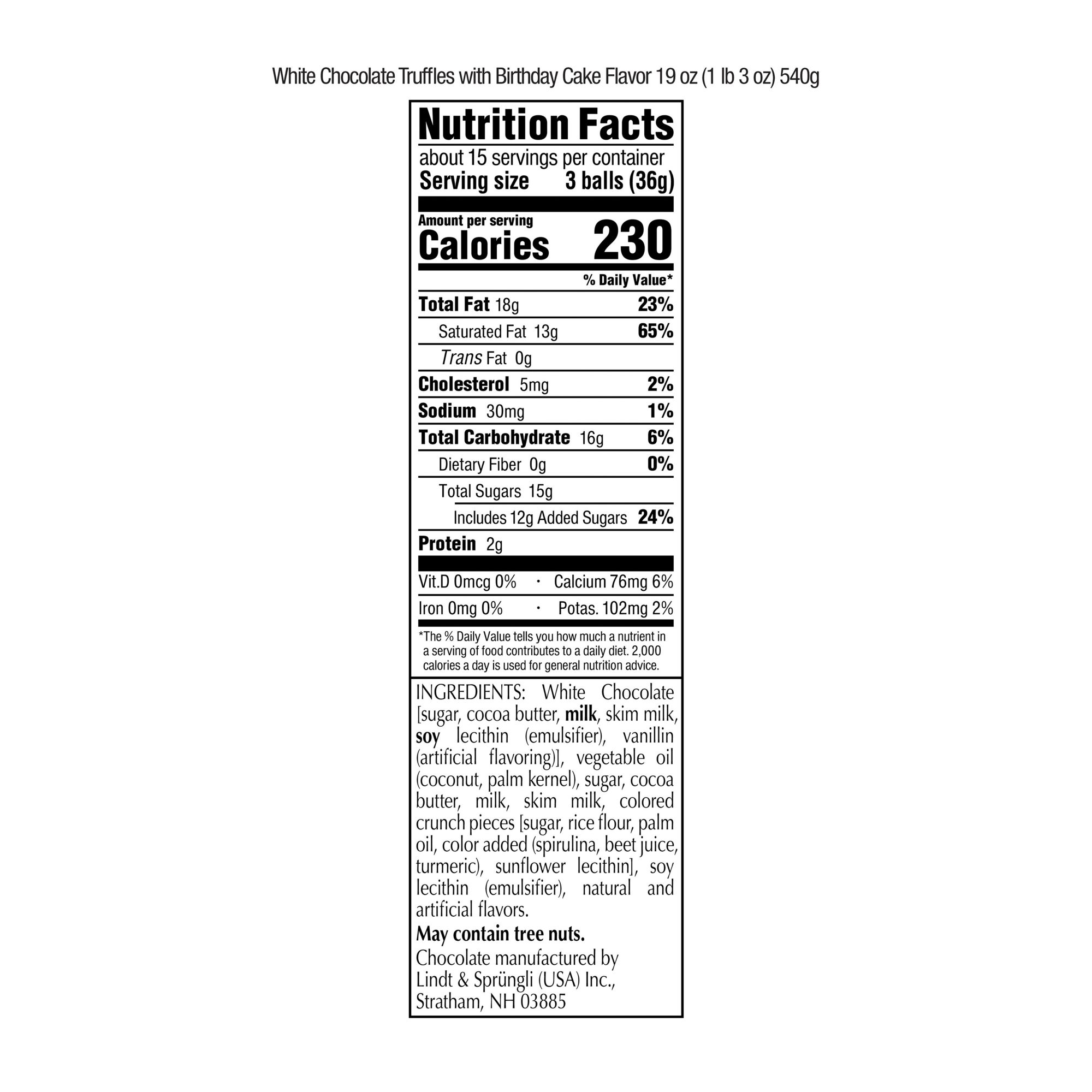 Includes birthday cake flavored chocolate truffles, 19 oz.