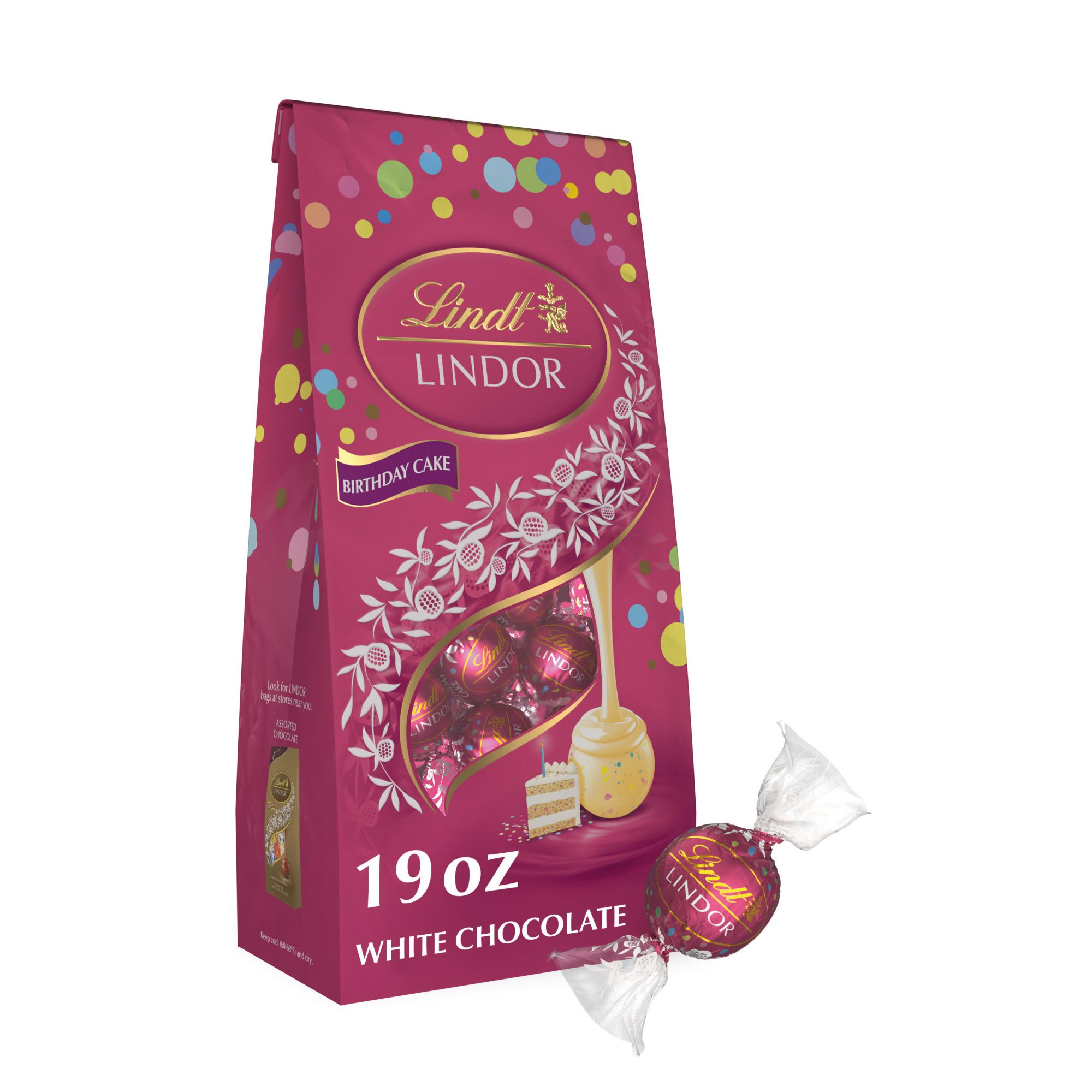 Experience the ultimate white chocolate indulgence with Lindt Lindor Birthday Cake Truffles. Surprise someone special with a white chocolate candy gift, or share one of these Lindt Lindor Chocolate Truffles as a sweet, indulgent after-dinner treat. With a delicate white chocolate shell and a luscious, smooth melting white truffle center, this truffle proves that white chocolate has never been so creamy and indulgent. When you break the shell, the truffle's smooth, luscious center begins to melt and so will you. These individually wrapped chocolates are the perfect size to enjoy anytime, anywhere. Lindt chocolate embodies the passion and expert craftsmanship of Lindt Master Chocolatiers for a luscious and rewarding chocolate experience. Made to Melt You. Anytime. Anywhere. Smooth, melting white truffle center inside a rich white chocolate shell creates a luscious experience. Gourmet Lindt Lindor truffles are perfect as gifts or for making any moment special. Individually wrapped truffles are perfect for sharing.