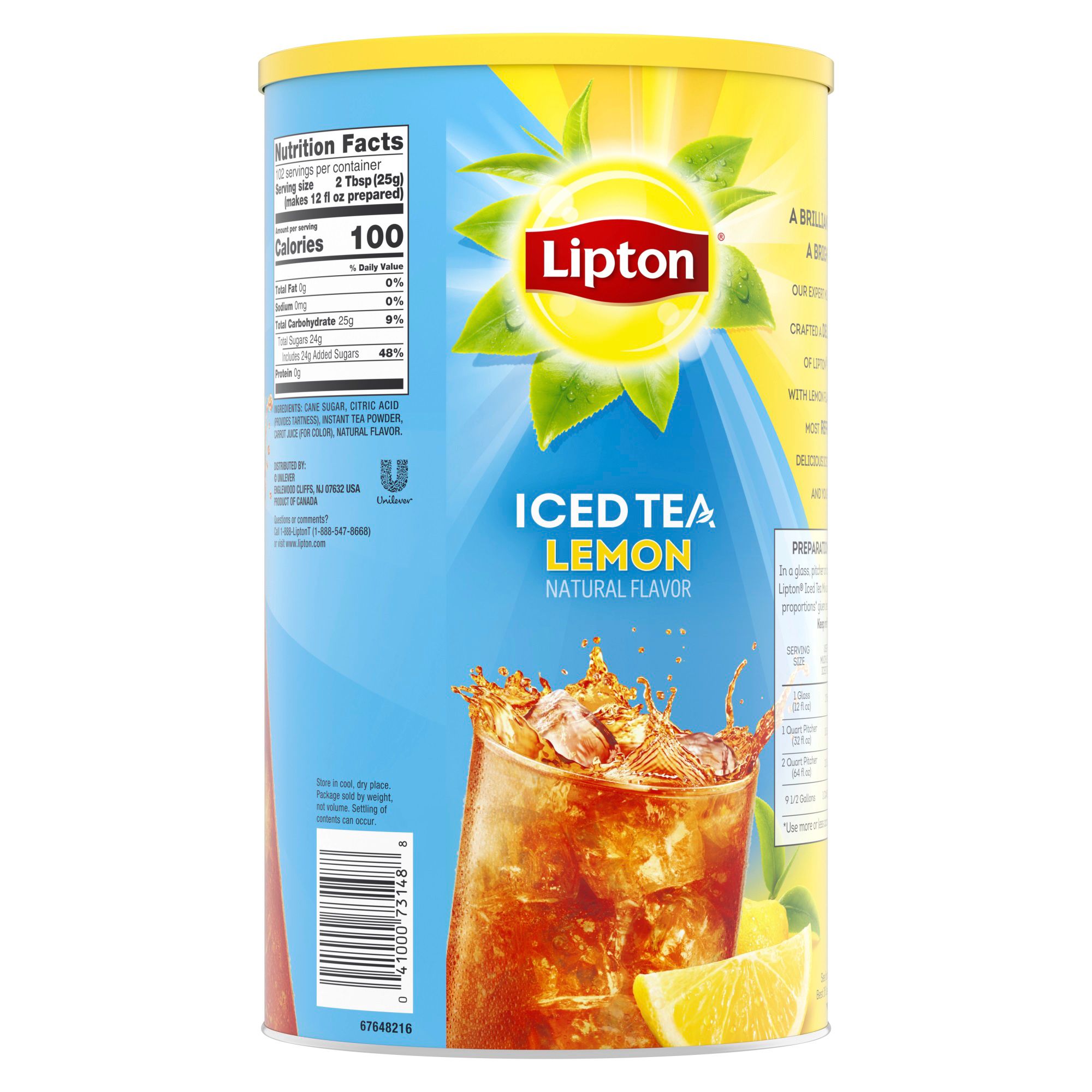 Recharge with this classic citrus refresher. Lipton lemon iced tea mix has pure lemon flavor blended with the crisp taste of real tea. Lipton Lemon Iced Tea Mix is brewed from real leaves so the taste is always pure and satisfying.