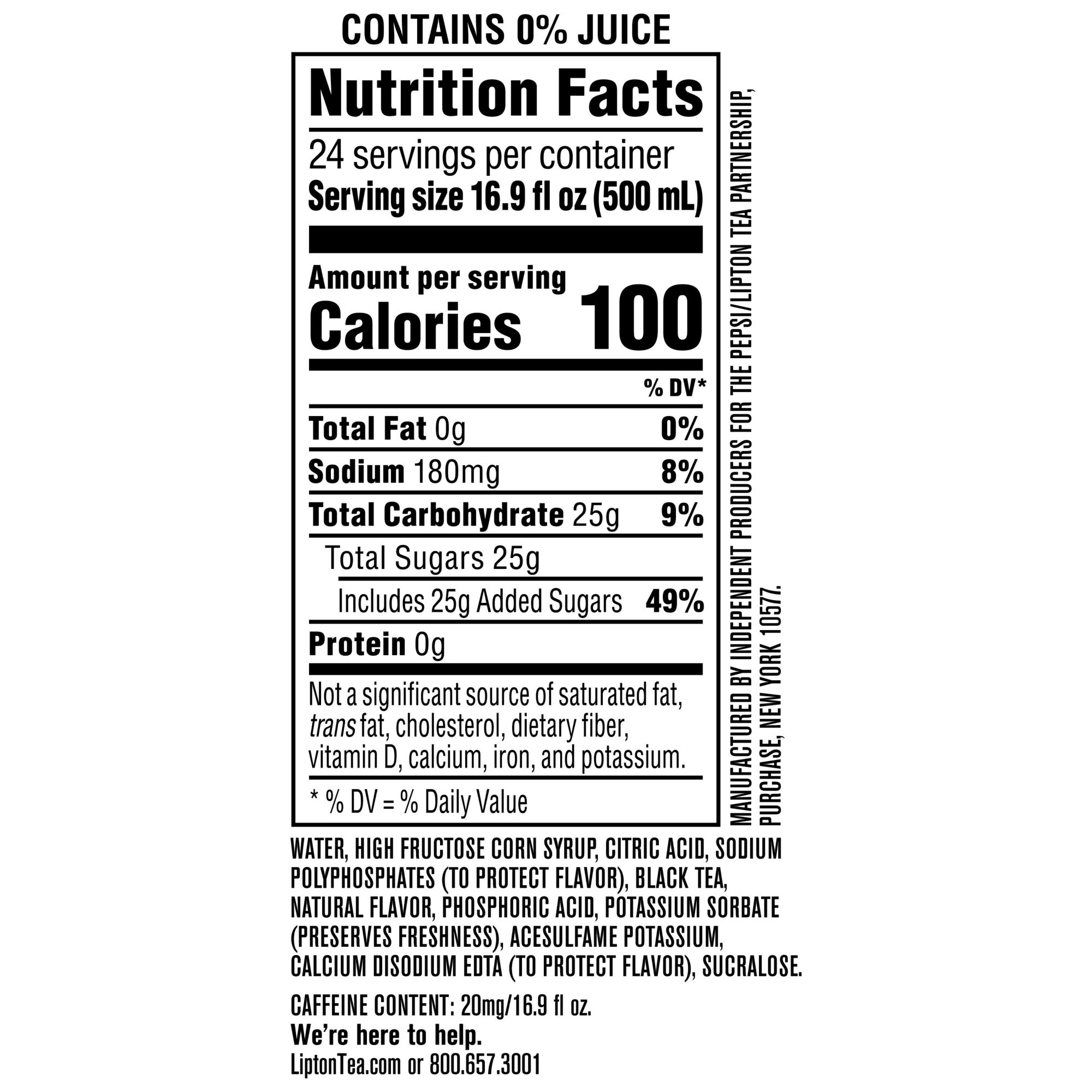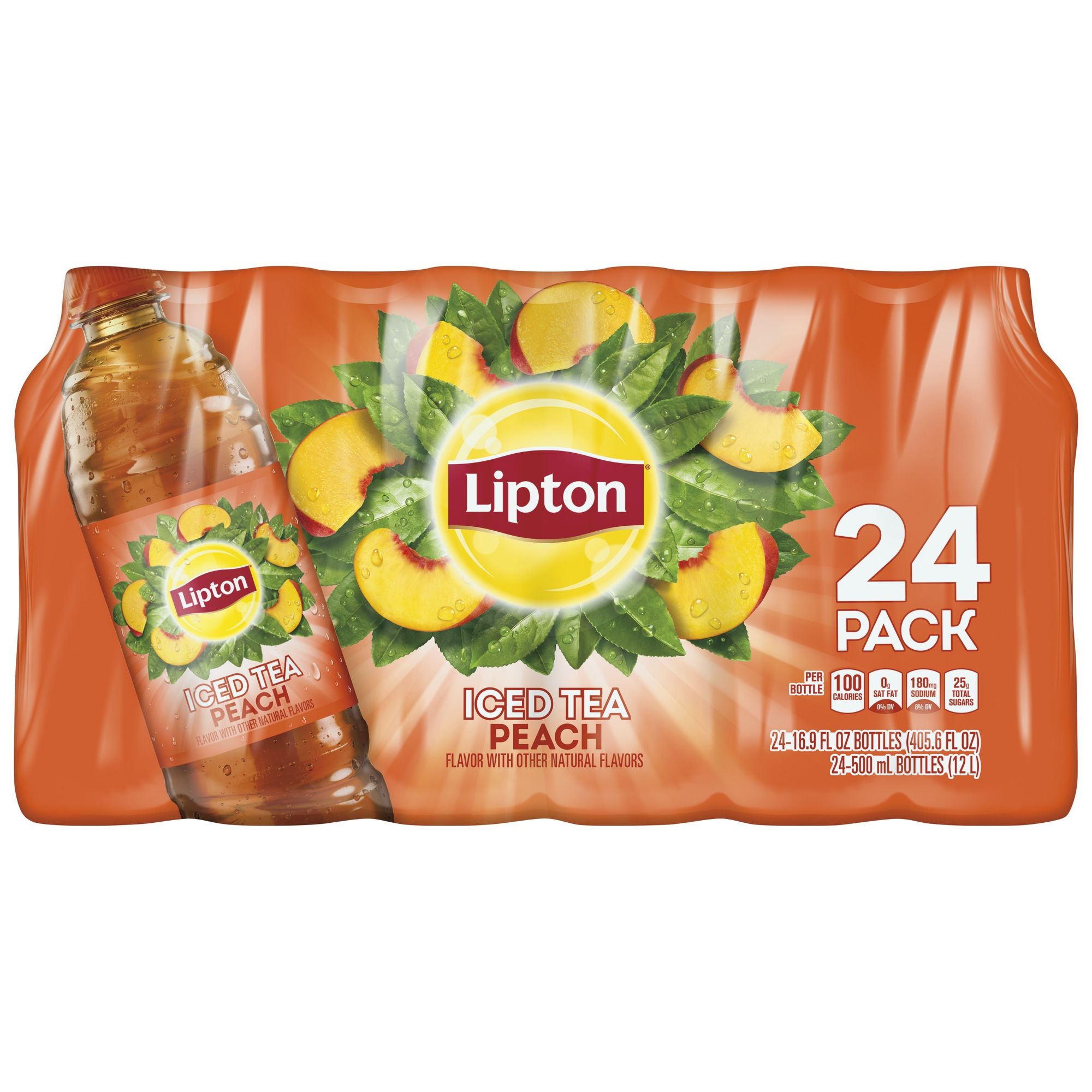 Lipton Black Iced Tea Lightly Sweetened Peach is perfectly chilled and ready to serve anytime. We start with sun-drenched tea leaves and purified water. It is then carefully blended and chilled to capture that refreshing, crisp tea taste and finished with just the right touch of sweetness.