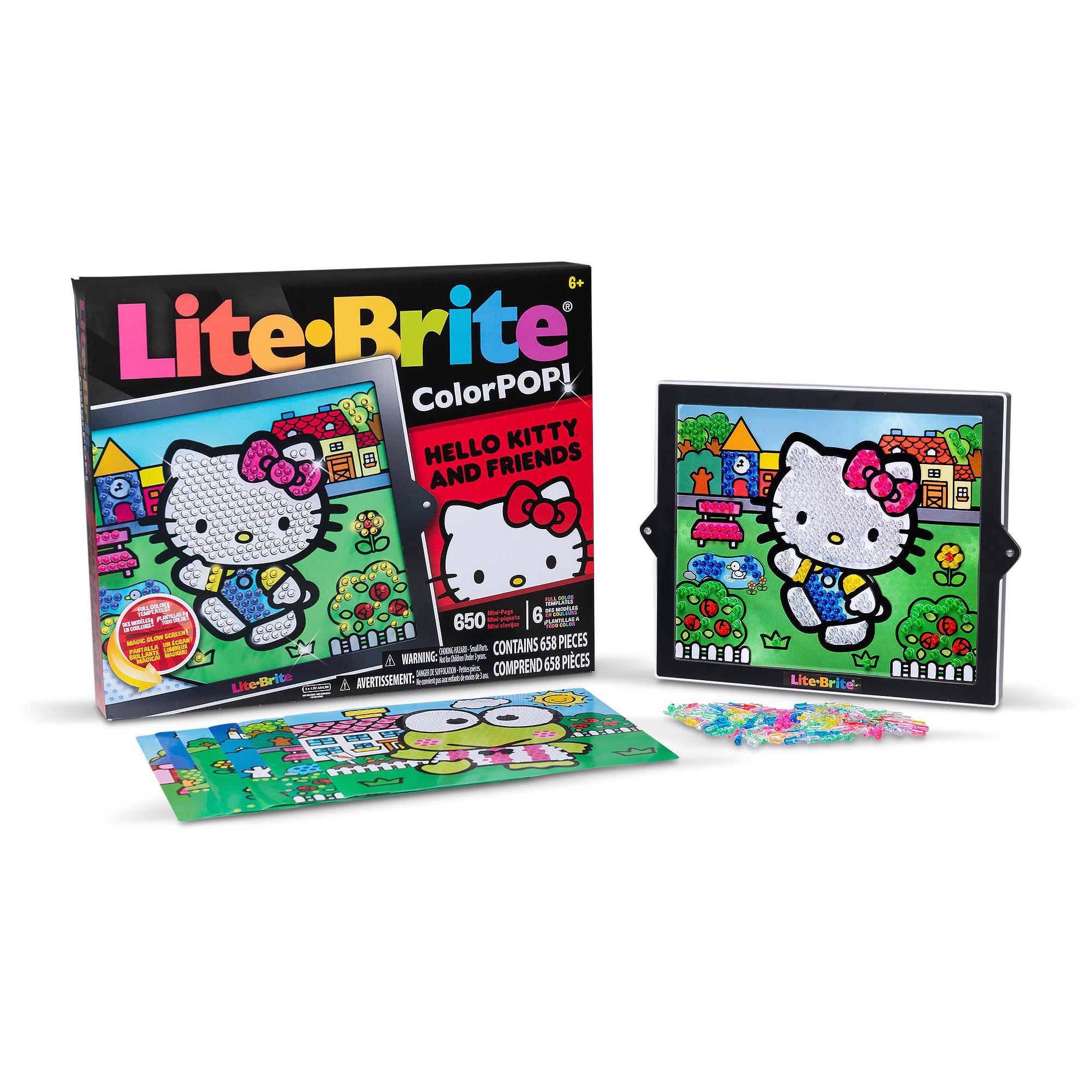 Say hello to the cutest glow ever with the Lite-Brite x Hello Kitty and Friends ColorPOP Edition. This adorable collab brings Hello Kitty and Friends to life with six ColorPOP templates—perfect for fans ages six and up. Choose from full-color templates like Hello Kitty strolling by the pond; My Melody ready for cotton candy and a ferris wheel ride; or Kuromi dreaming up a mischievous day in style. With 650 Mini-Pegs—specially designed to be smaller and slimmer—fans can create ultra-detailed art with light that truly POPs with color and precision. Scan the QR code on the package to download and print additional templates at home. Plus, with a first-ever translucent HD screen, fans can enjoy a magical glow in every peg and vibrant scene—brought to life with four dynamic light modes: steady, bounce, flash, or clockwise. For convenience, the light automatically turns off after five minutes of inactivity, or you can hold the power button for five seconds to keep the glow shining continuously. Once your artwork is complete, display it proudly using the built-in pull-out easel—perfect for showcasing your glowing creations at home or wherever inspiration strikes!