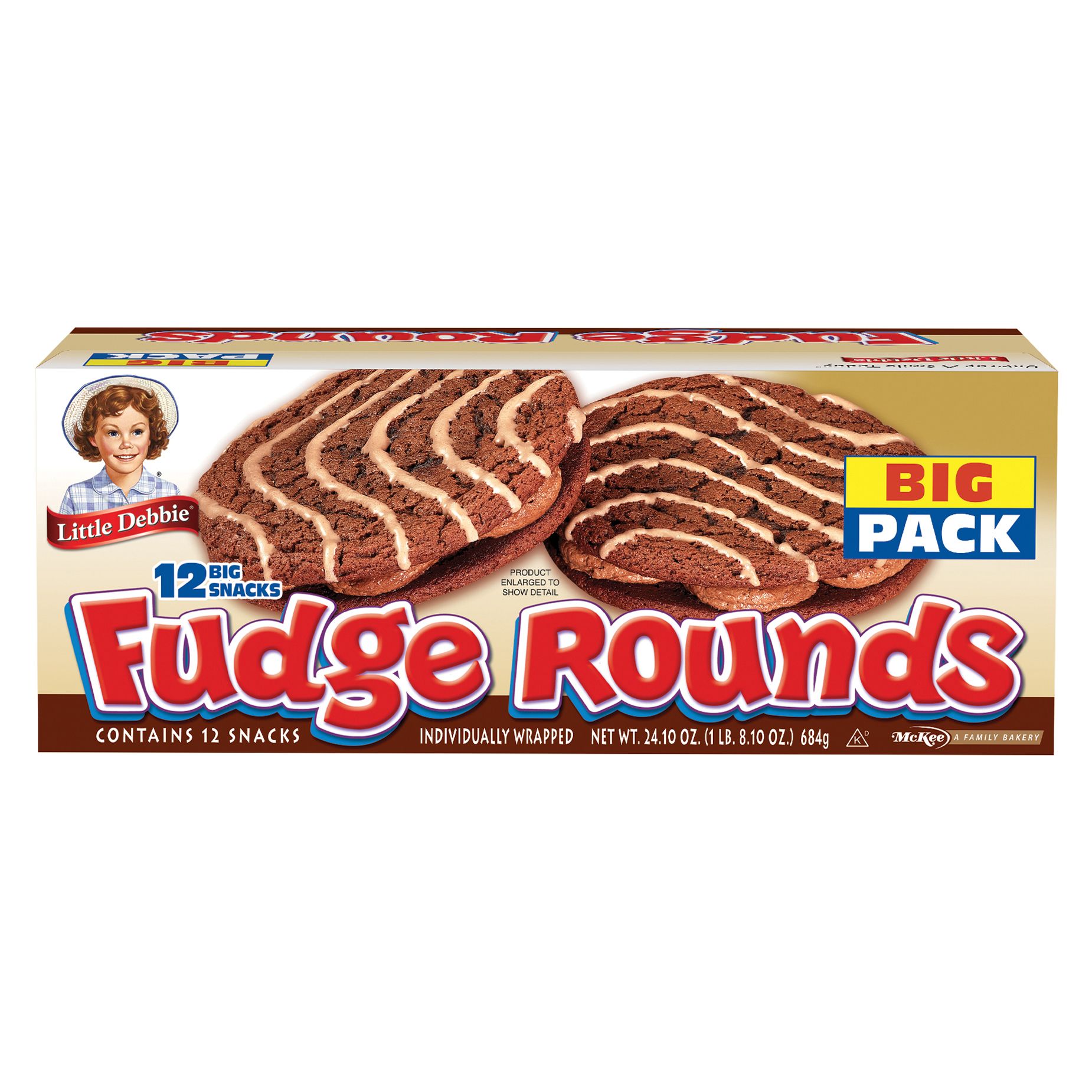 Little Debbie Fudge Rounds are a beloved favorite. Two rich, chocolate cookies are filled with light fudge creme in the middle and topped with delicious fudge icing. The 12 individually wrapped packages are an ideal addition to lunchboxes and make the perfect anytime snack. Made in the USA.