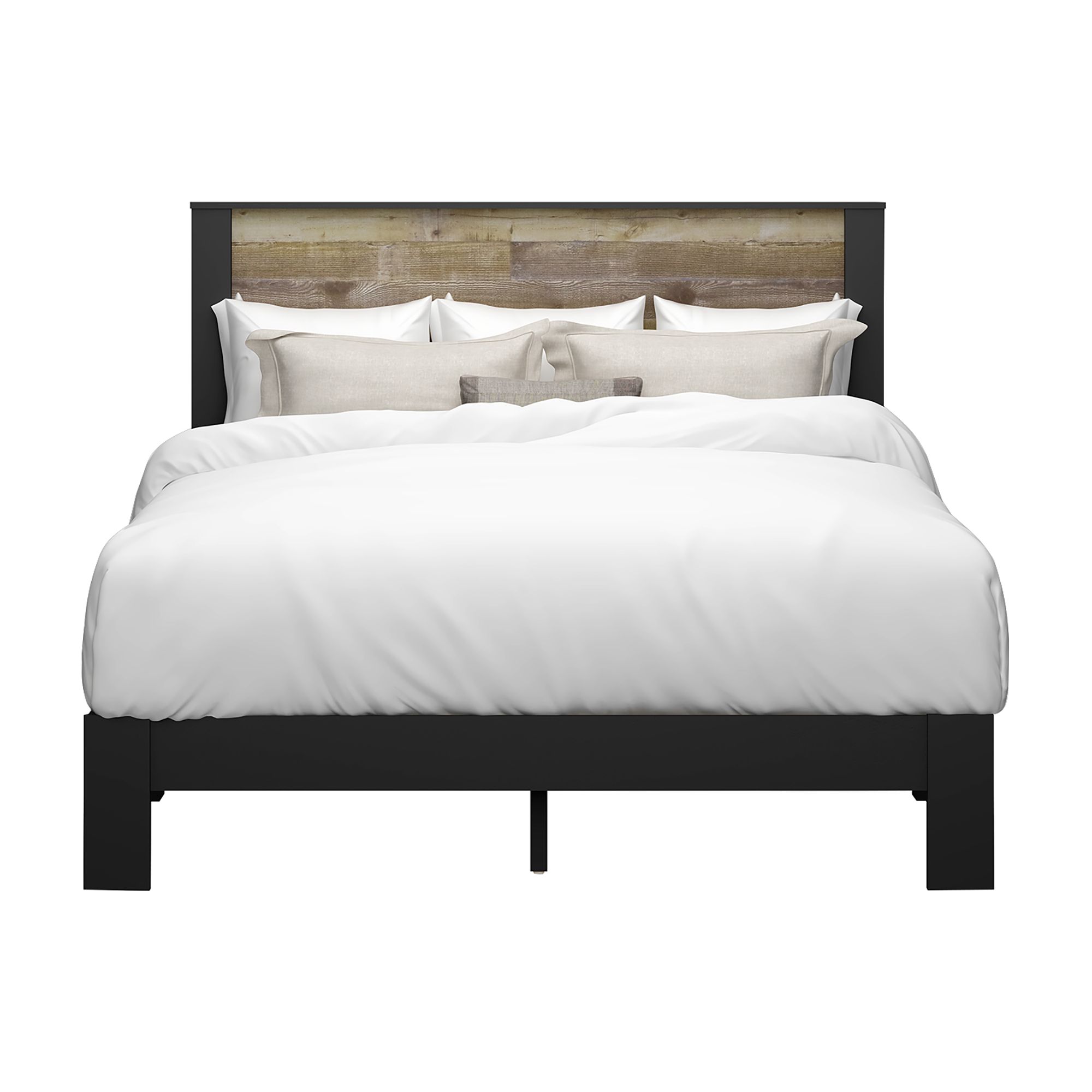 Living Essentials by Hillsdale Bezza Queen Platform Bed, Knotty Oak and Matte Black