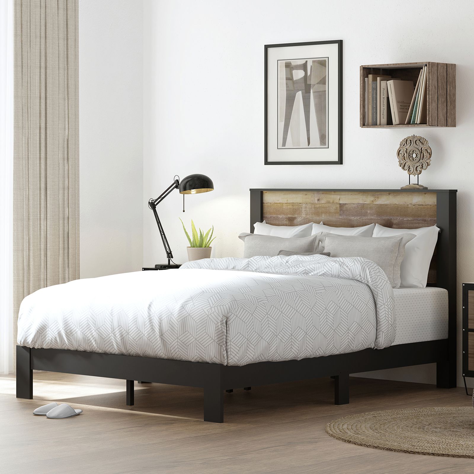 Rustic chic queen platform bed