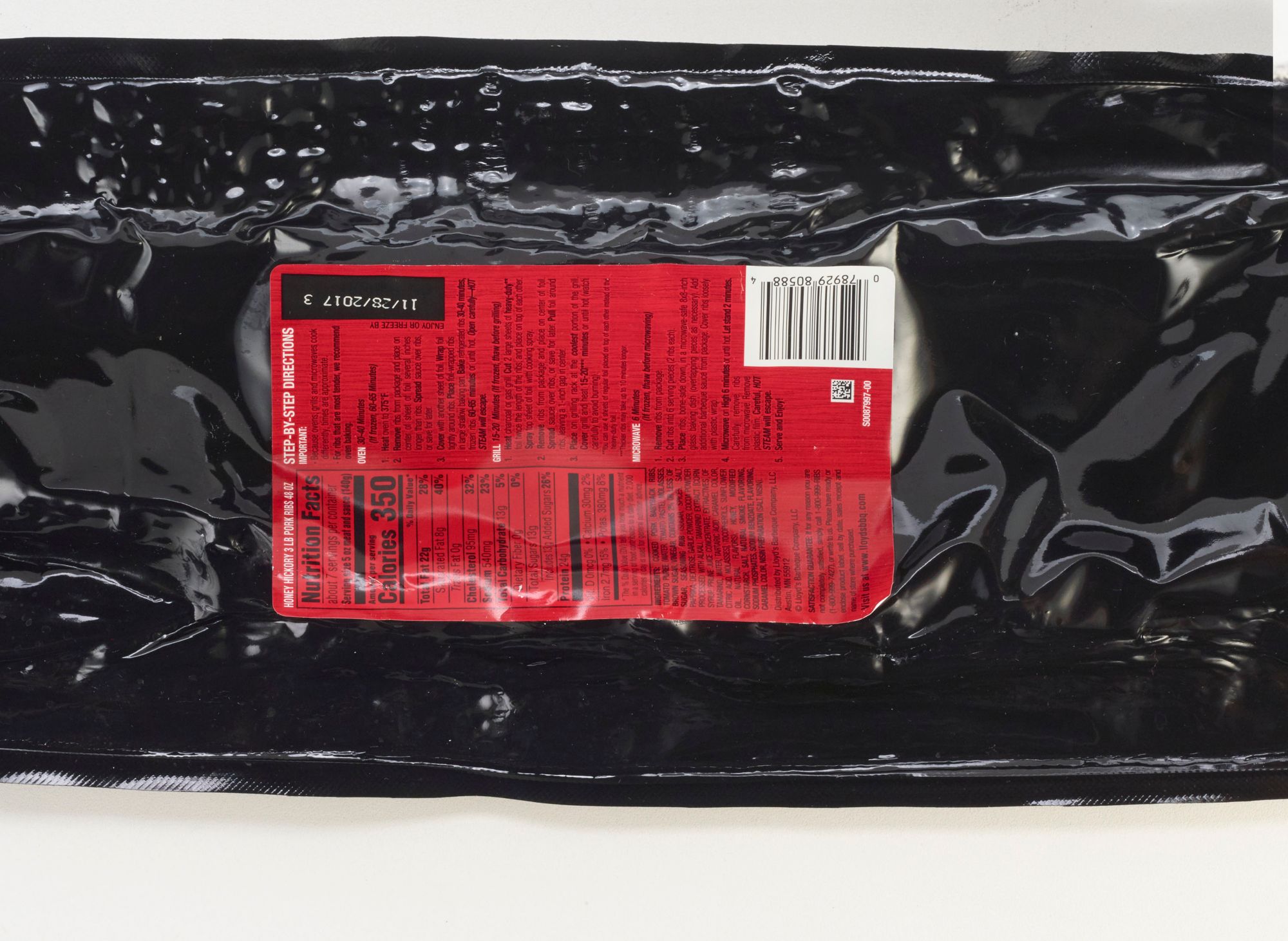 If you like ribs, you'll enjoy Lloyd's Baby Back Pork Ribs marinated in honey hickory BBQ sauce. They contain three pounds of mouthwatering BBQ ribs that will tame any appetite.