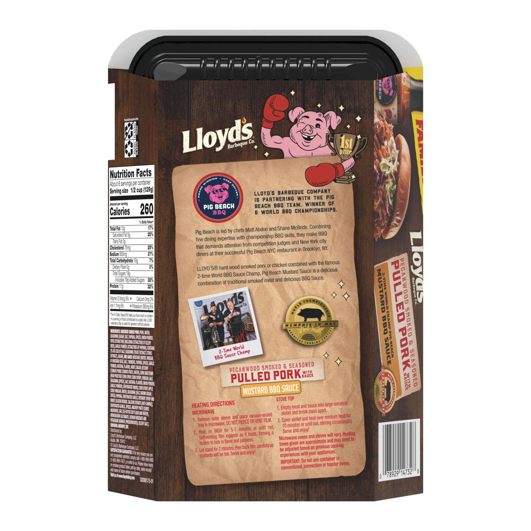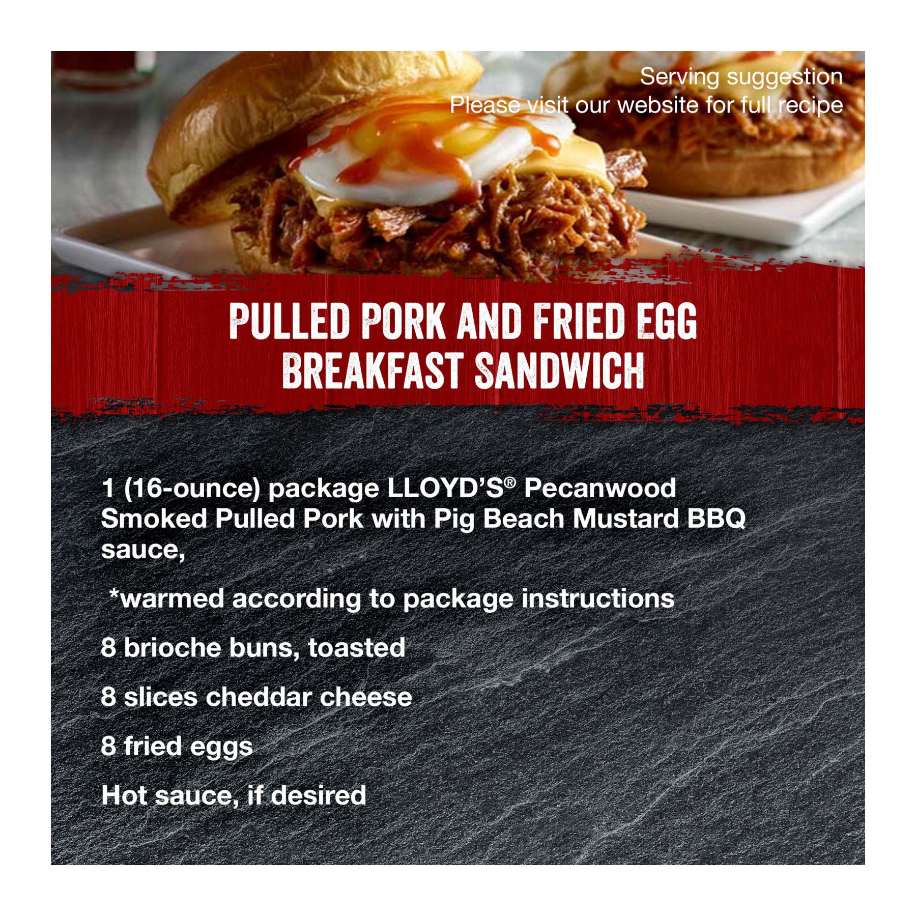 Lloyds Barbeque Co. has partnered with a team of successful chefs and restaurateurs from the famous Pig Beach BBQ Brooklyn restaurant, who also led a five-time World Championship competitive BBQ Team. Lloyd's Pulled Pork is a pecan wood smoked foodservice quality pork butt cooked low and slow for over eight hours and paired with a two-time world champion mustard Carolina style BBQ sauce. Enjoy Lloyds Pulled Pork with Pig Beach BBQ sauce as a slider, on a pizza, or as a main dish with some coleslaw.
