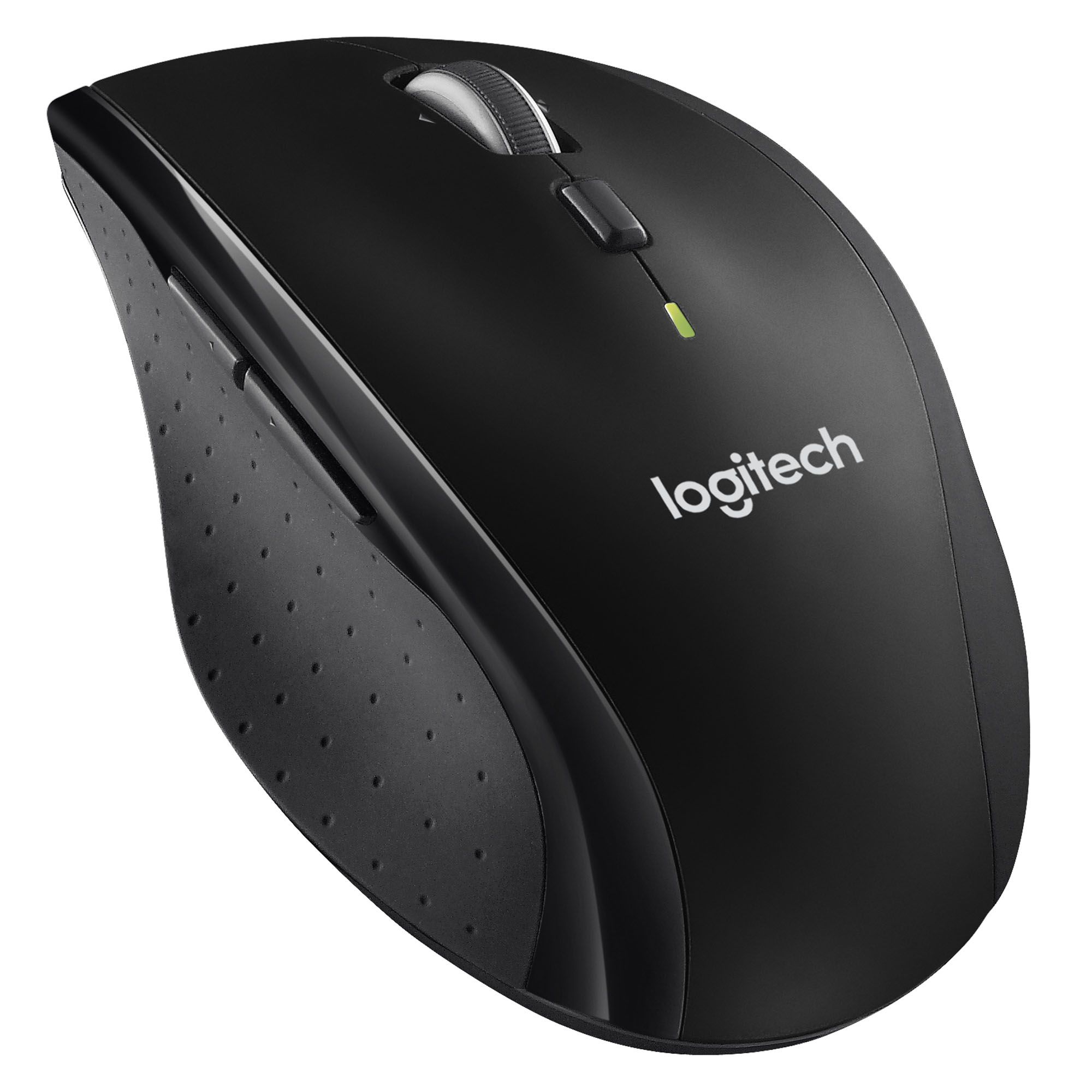 The Logitech Productivity Plus Mouse uses far less power than comparable wireless mice, so you'll go up to three full years between battery changes. This computer mouse uses a tiny wireless receiver that stays plugged in to your computer, so your mouse is ready to go-whenever, wherever, and for as long as it takes. Plus, hyper-fast scrolling means you'll fly through long documents to find what you need in a flash. Laser grade tracking means you'll get smooth, responsive cursor control. And the sculpted, right-hand shape means you'll be as comfortable finishing up as you were getting started.
