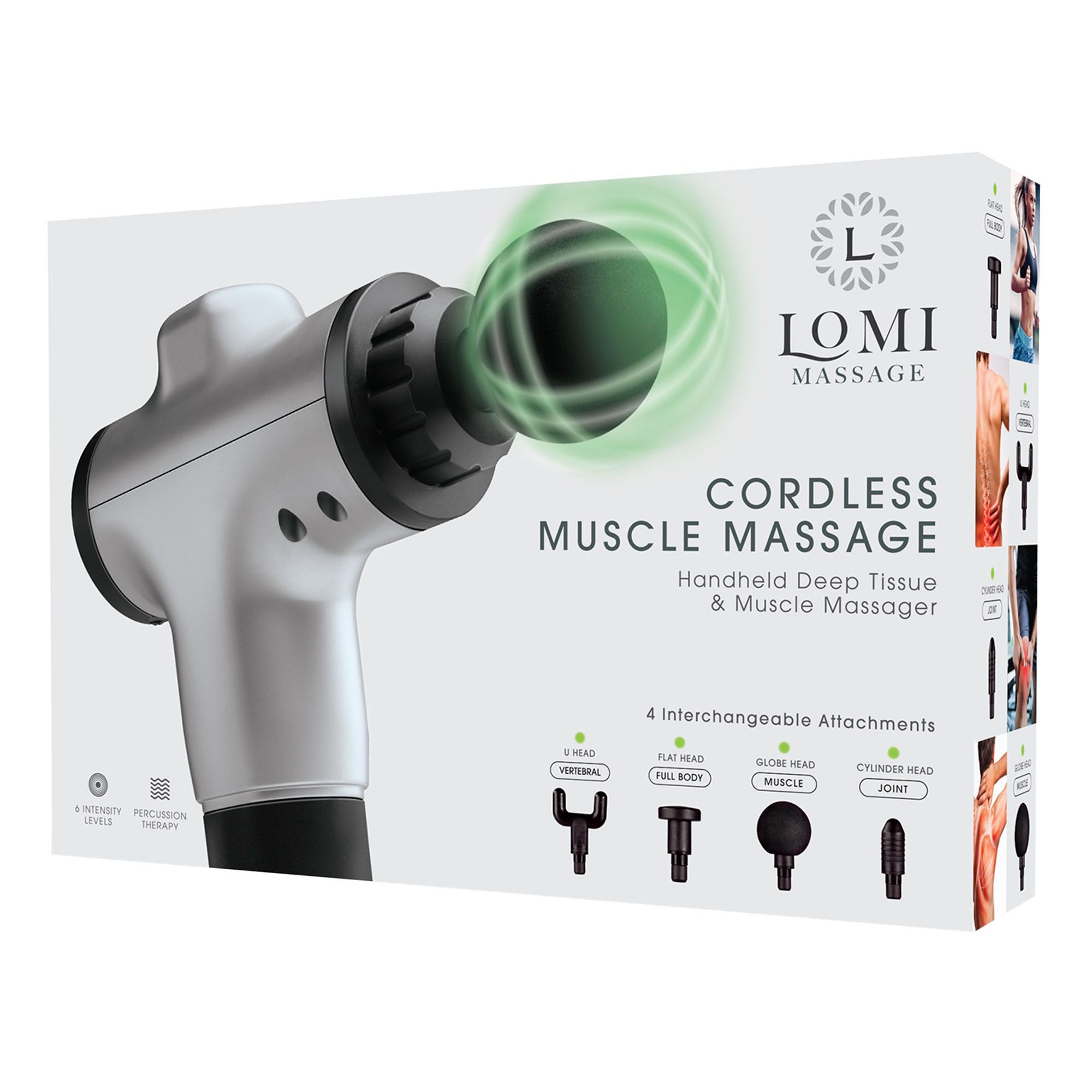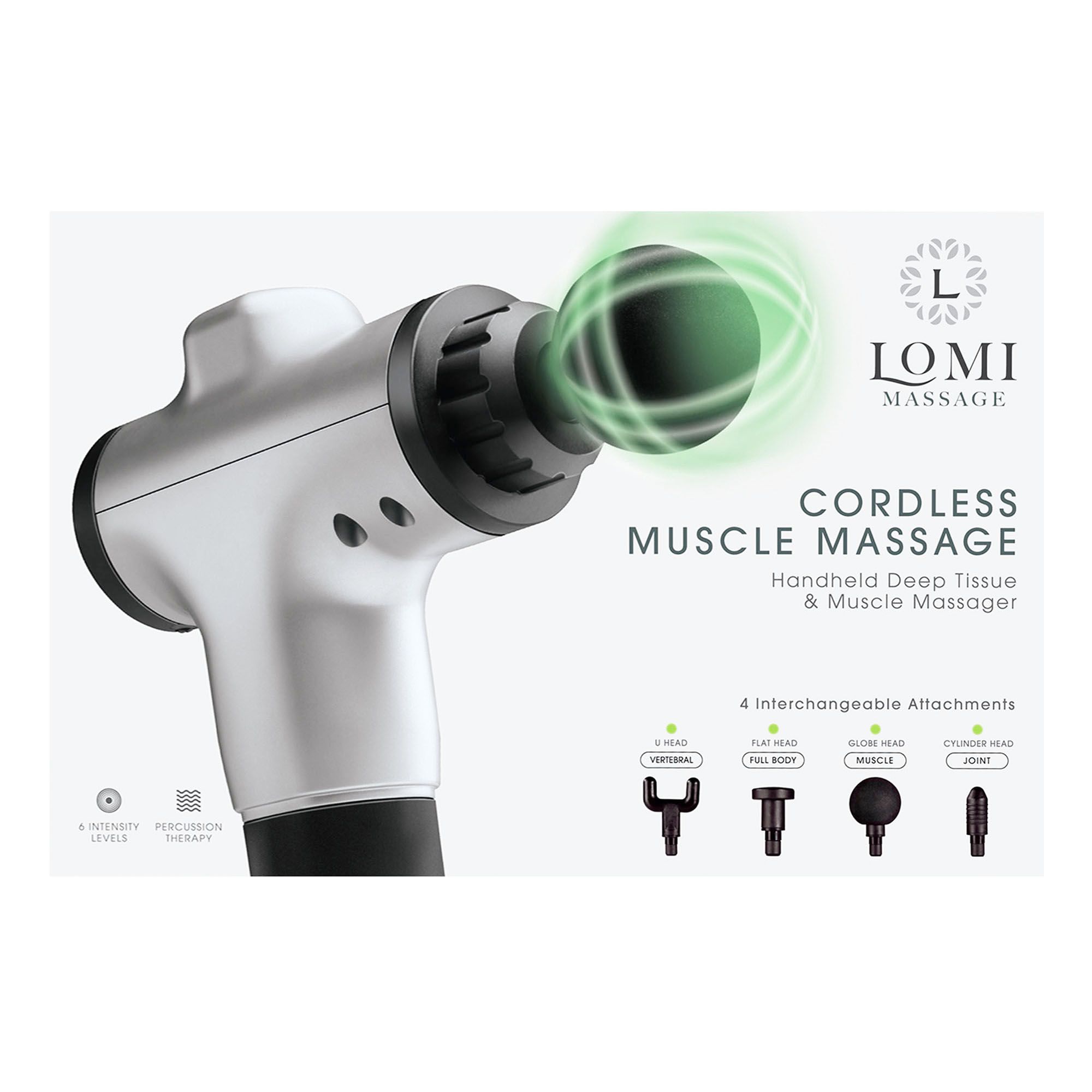 Lomi finds practical ways to address your universal wellness needs with specialized technology created to make you feel the relief you deserve, whether you are at home or on-the-go with this handheld deep tissue and muscle massager. Customize your massage experience with a six-gear pressure selection and four distinctive massage heads. The Cordless Muscle Massager can provide relief to sore muscles, joints, or pressure points.
