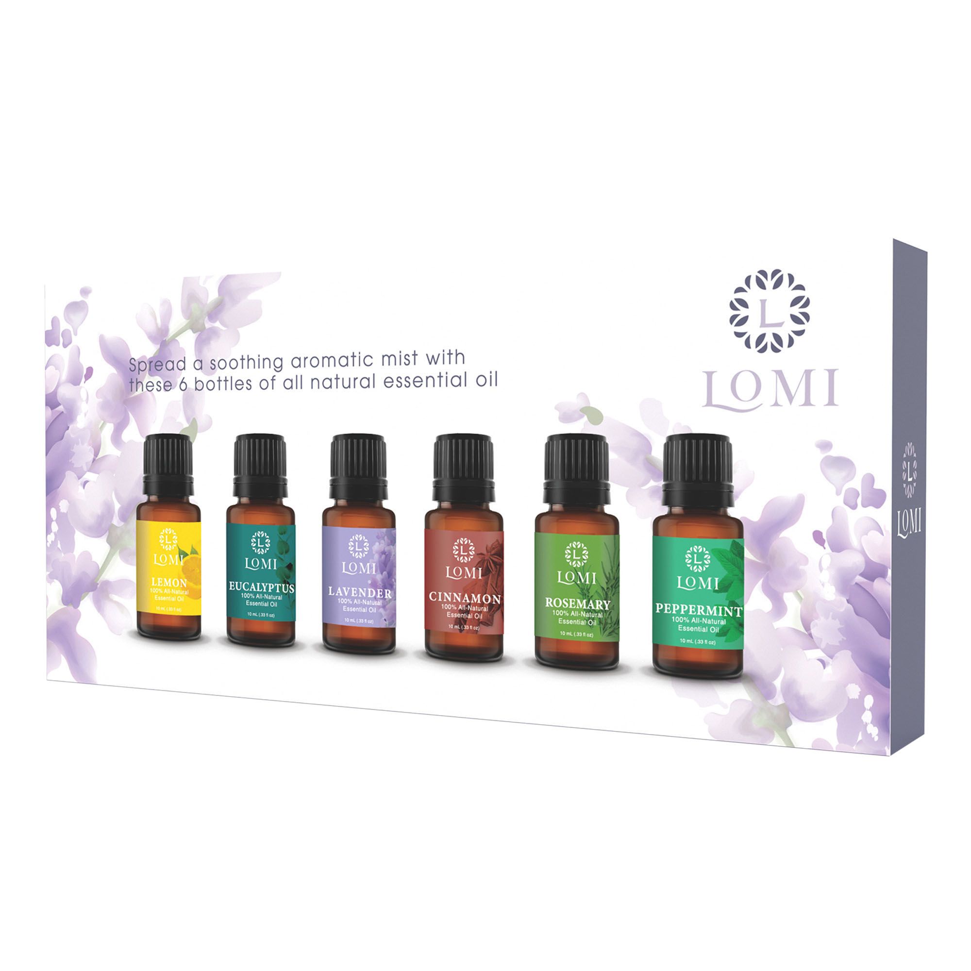 Begin an exciting aromatherapy journey with this set of 6 bottles of 100% essential oil. Choose from Lemon, Eucalyptus, Lavender, Cinnamon, Rosemary, or Peppermint to brighten your mood and bring aromatic ambience to your space. Use them in an aromatherapy diffuser to experience the joy of these all-natural aromas. For best results, gently shake and add 2-10 drops of essential oil to the water. Add more drops for a more intense aroma.