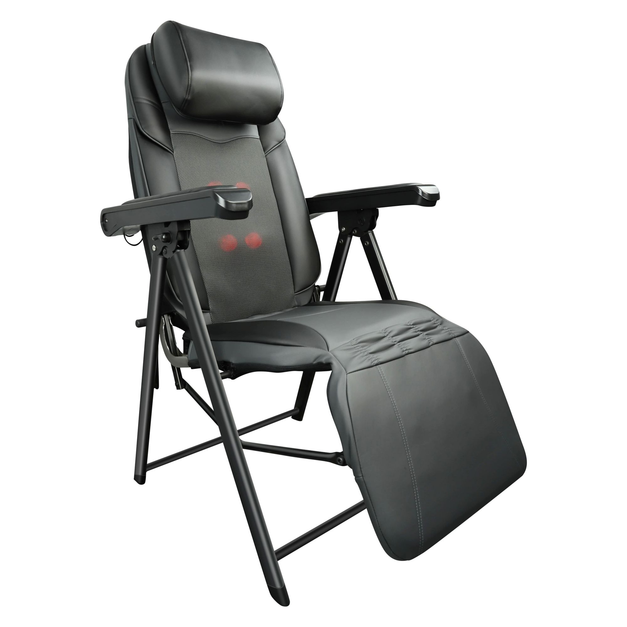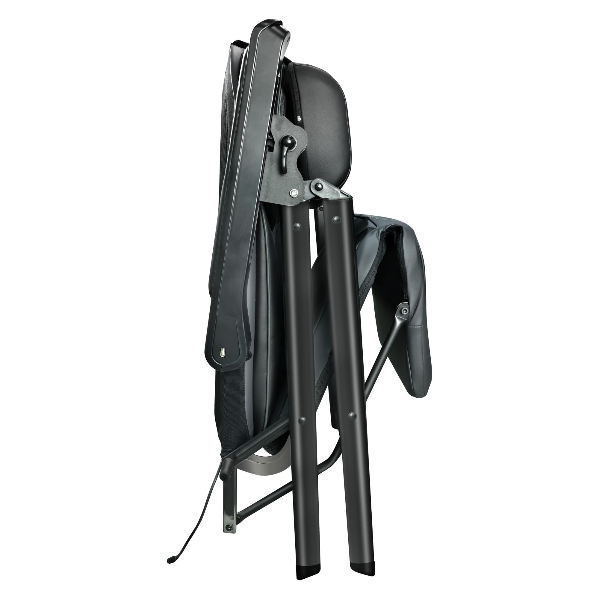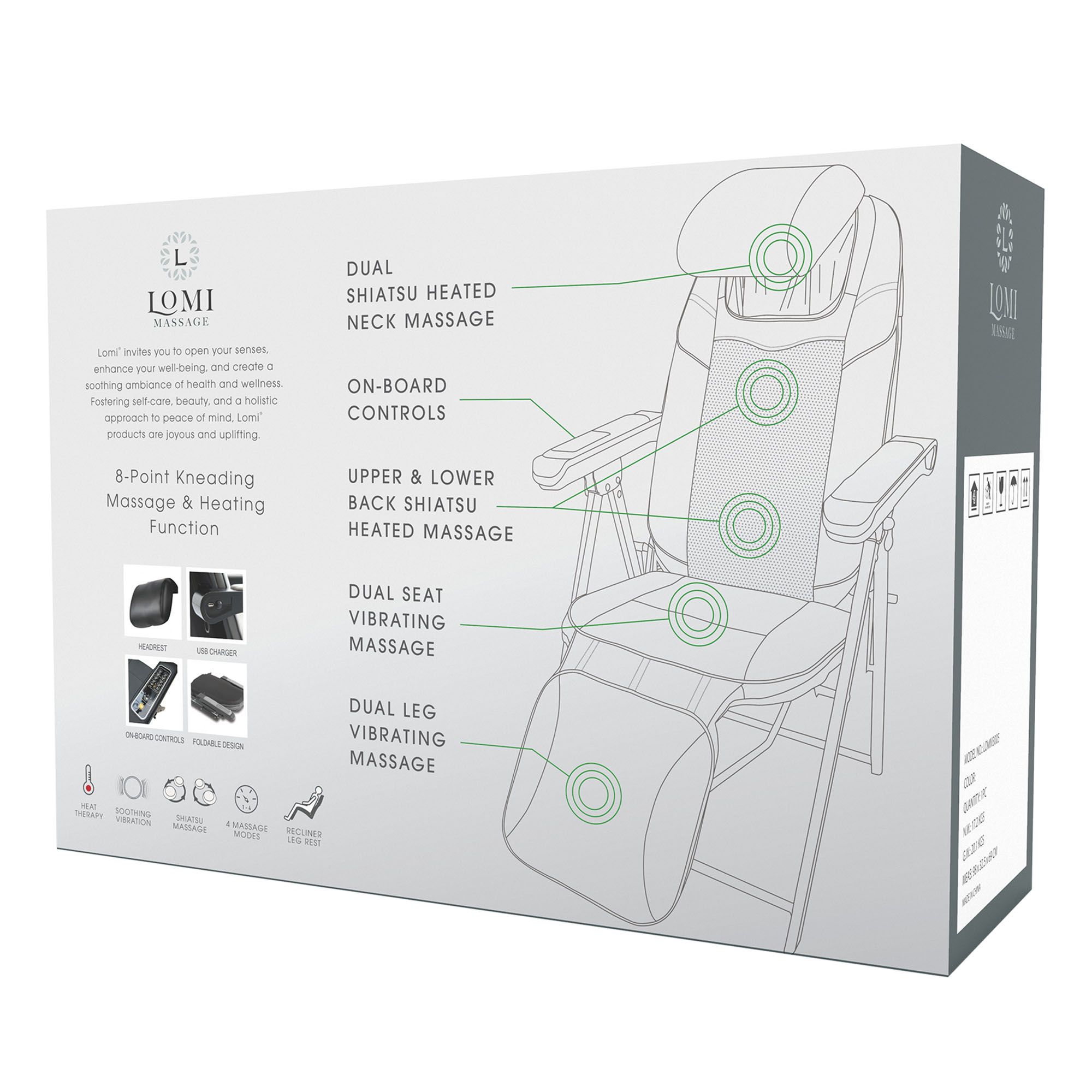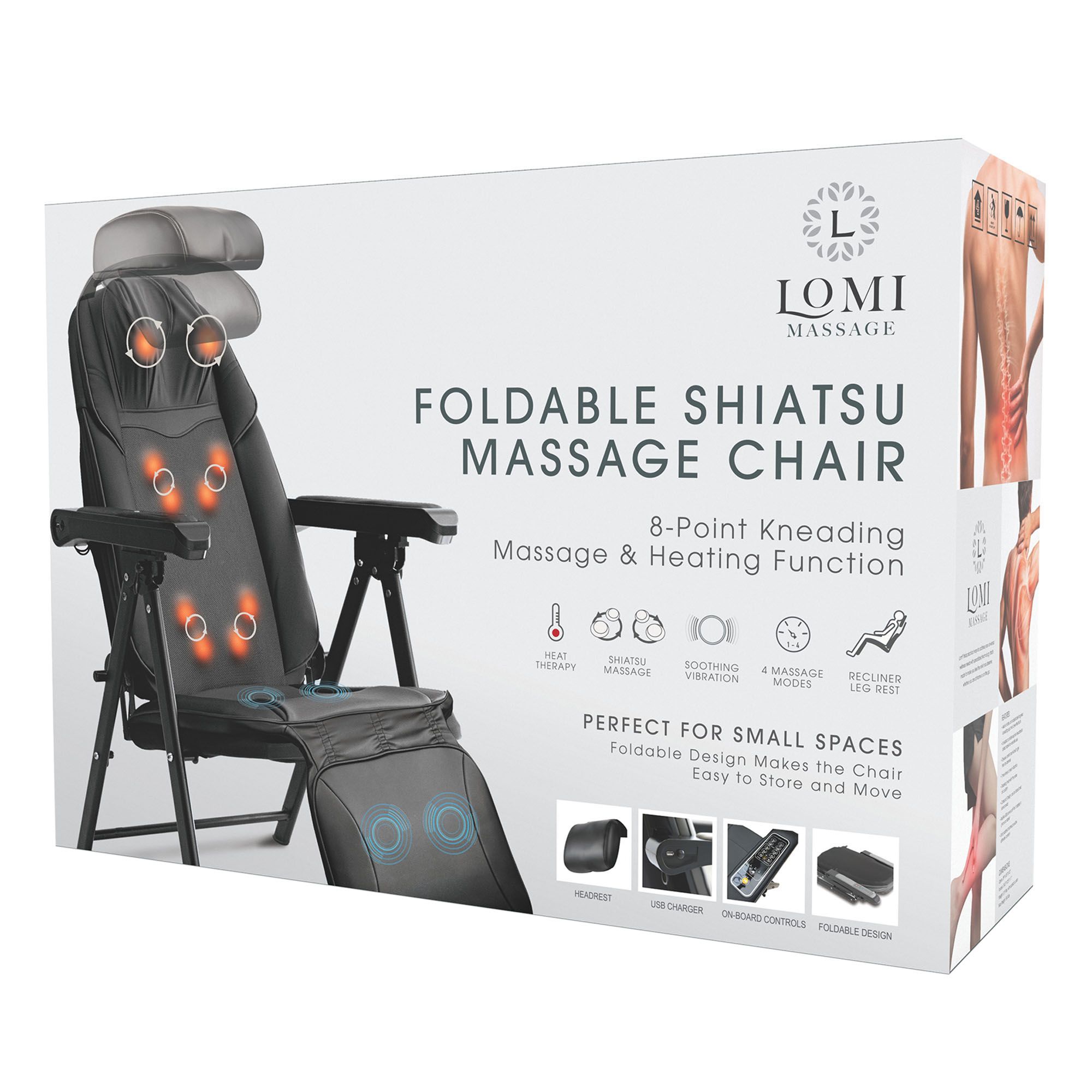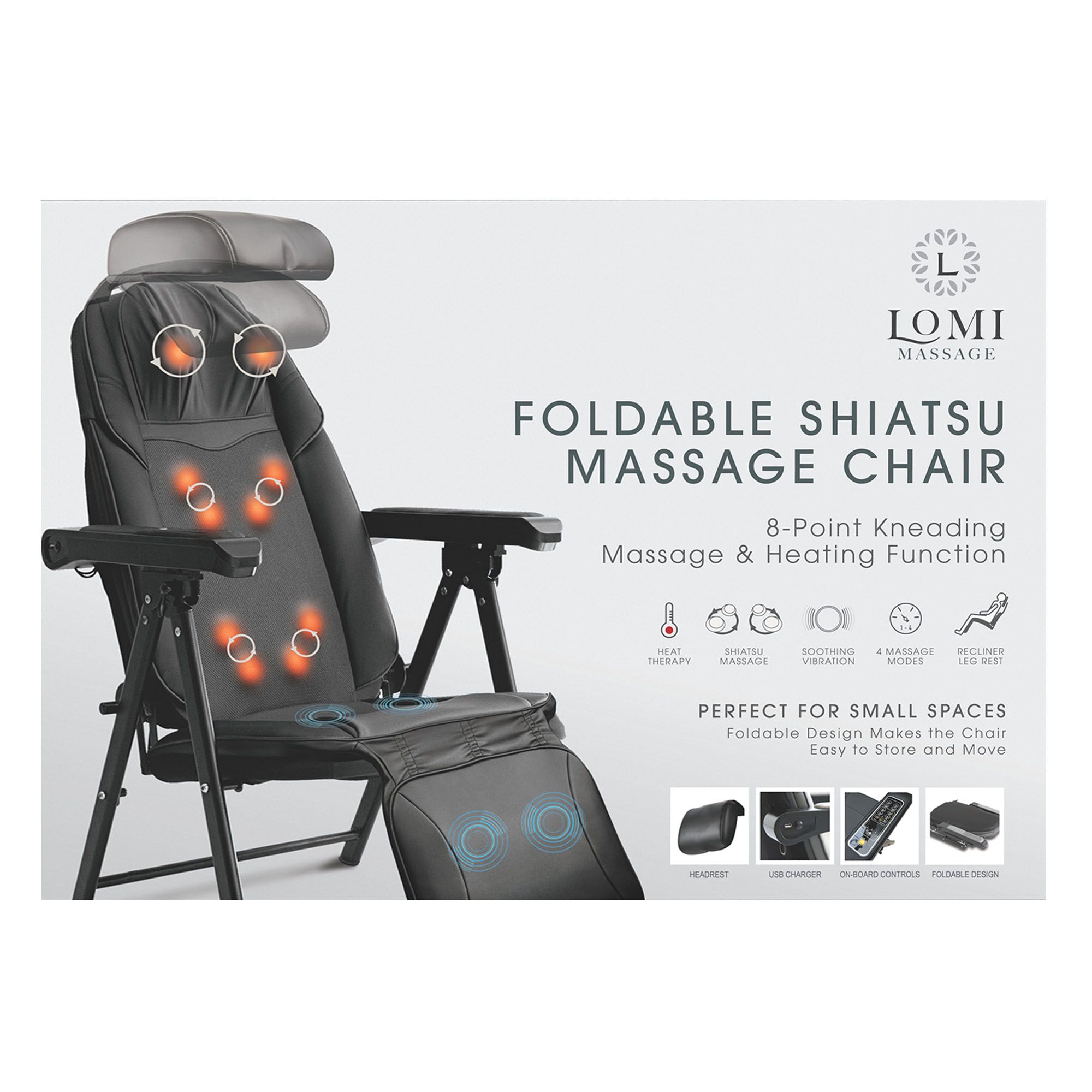 Enjoy eight points of kneading massage with the Shiatsu Massage Chair. Easily portable, the massage chair has a heat function and a reclining leg rest. The chair is perfect for small spaces and provides a built-in USB port for charging a phone or tablet.