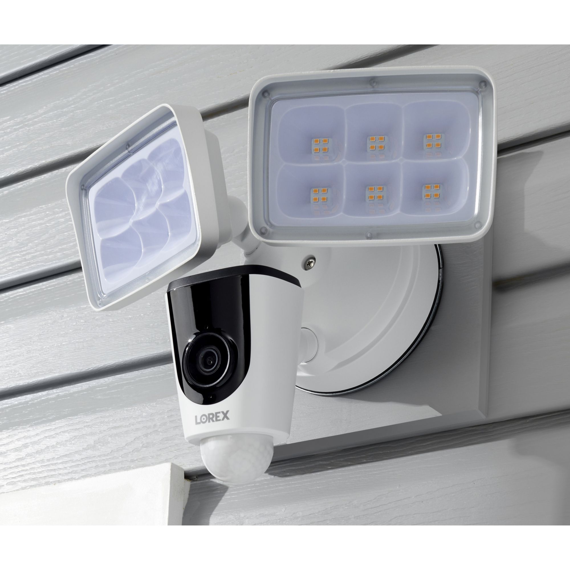 Combine security and lighting with this 1080p Wi-Fi floodlight camera. The dual LED lights can produce a total of 4,000 lumens, which is more than enough to illuminate your front door, garage, or backyard during the night. It can also serve as an important deterrent for any unwanted visitors detected on your property. Other features include full 1080p HD recording, a remotely triggered siren, two-way audio, and infrared night vision. Local storage also means no monthly fees and total privacy. This floodlight camera can be installed using your existing light fixture wiring, so it stays powered 24/7 without ever having to recharge batteries. The physical camera can also be adjusted vertically and horizontally, a handy feature in today's limited real estate spaces.
