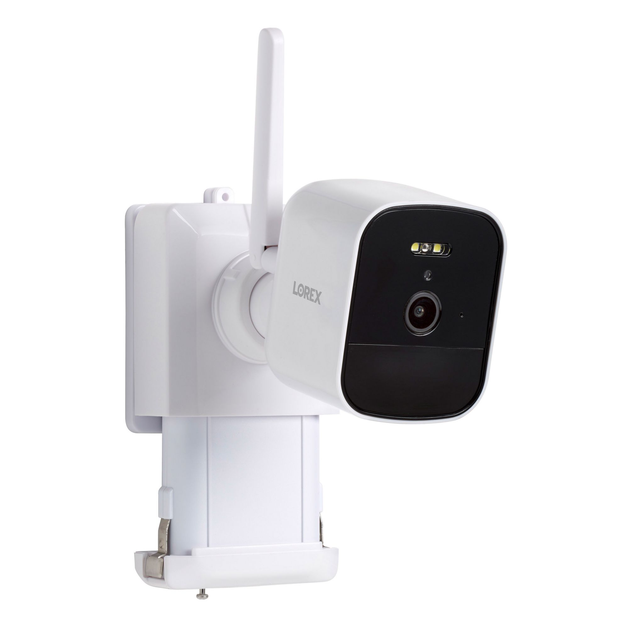Includes 4k battery camera, three-cell batteries, camera power supply, mounting brackets, fastener screw, four mounting anchors and screws