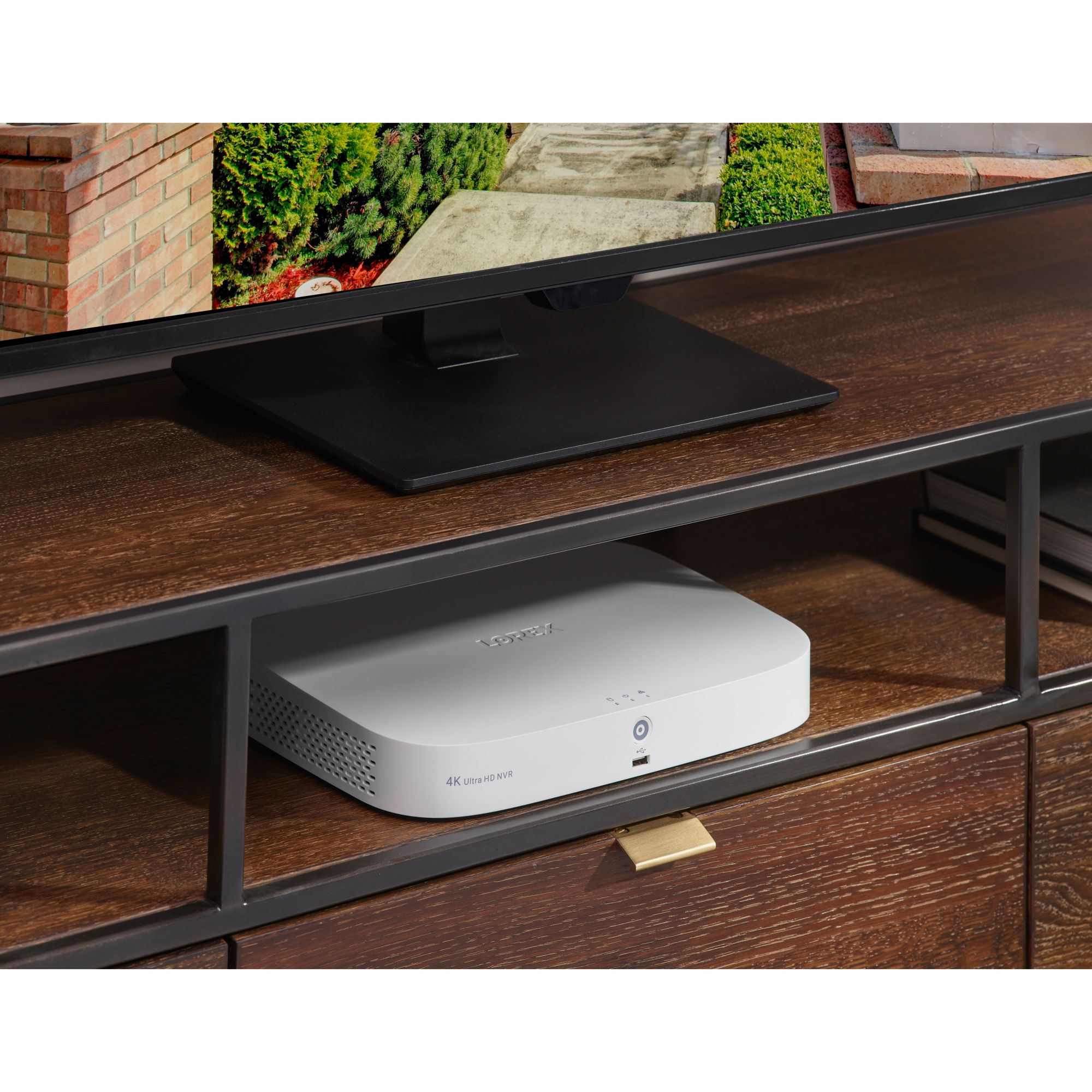Record and view video in up to 4K (8MP) Ultra HD resolution on all channel View synchronized playback of up to four cameras at the same time Color Night Vision Built for the outdoors, cameras are IP67 rated Quickly access your live footage with simple voice commands, compatible with Amazon and Google Includes one NVR, one AC power adapter, one USB mouse, one Ethernet cable, one HDMI cable, quick start guides, eight security cameras, eight mounting kits, eight cat5e Ethernet cables Warranty: 1 year limited