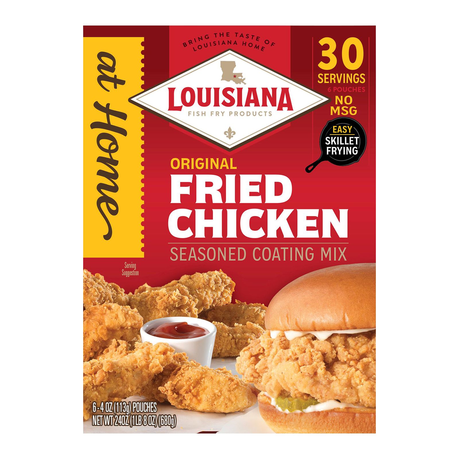 Skip the drive-through and enjoy crunchy chicken bursting with flavor at home! Louisiana Fish Fry’s Original Fried Chicken coating mix is specifically developed for skillet frying to bring perfectly crispy results. Make delicious chicken sandwiches or chicken tenders with this flavorful and crunchy breading seasoned with Louisiana Fish Fry’s original seasoning profile.