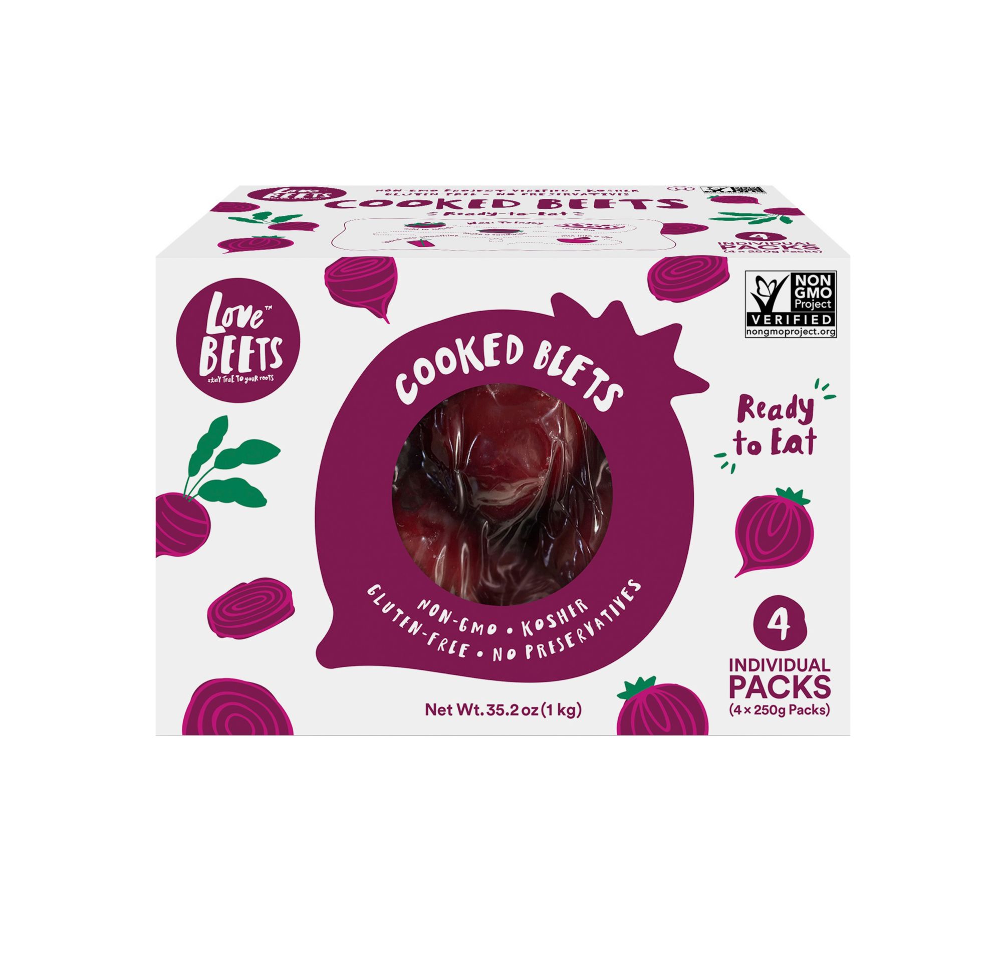 4 x 250g individual packs Ready-to-eat No Mess, No Fuss- Just delicious beets! All Natural, Non-GMO, Kosher, Gluten-free