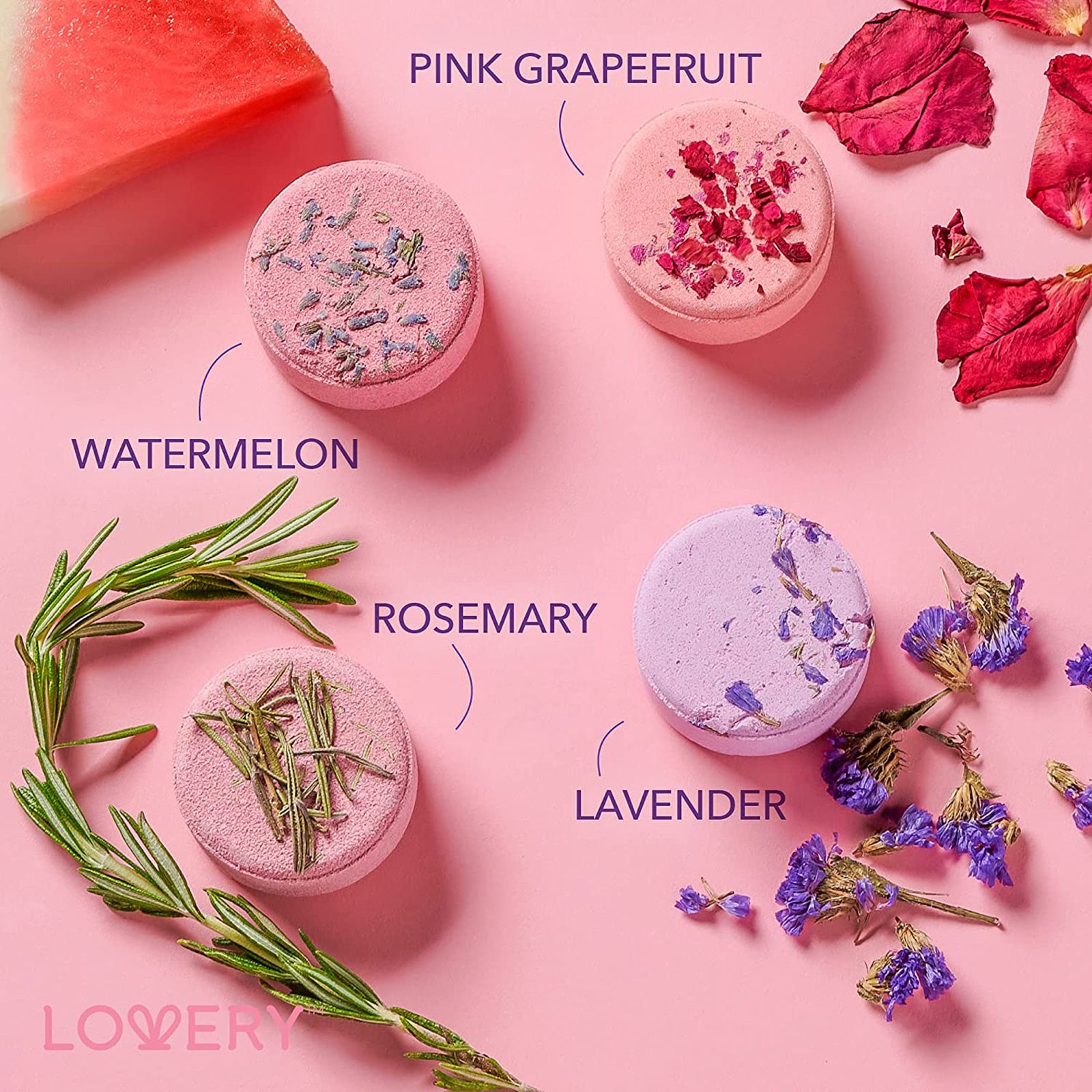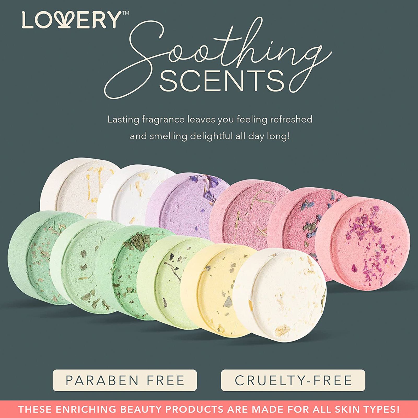 Relax and unwind with the exquisite Lovery Aromatherapy Shower Steamers Body Care 13-Piece Set. This set includes 12 distinct and long lasting fragrances. This set offers a versatile mix of well-balanced fragrances for aromatherapy, from stimulating and invigorating to calming and soothing. The steamers boast an all-natural formula, which is free from preservatives that are commonly used in cosmetics. They are 100% paraben and cruelty-free. Packed with essential skin vitamins such as vitamin E, shea butter, and jojoba oil, these vapor shower tablets nourish your skin, relax your nerves, and keep your mind at ease - providing you with a rejuvenating shower from head to soul. Celebrate the amazing women and men in your world with a much needed spa day relaxation gift! It comes in an elegant ready to gift box.