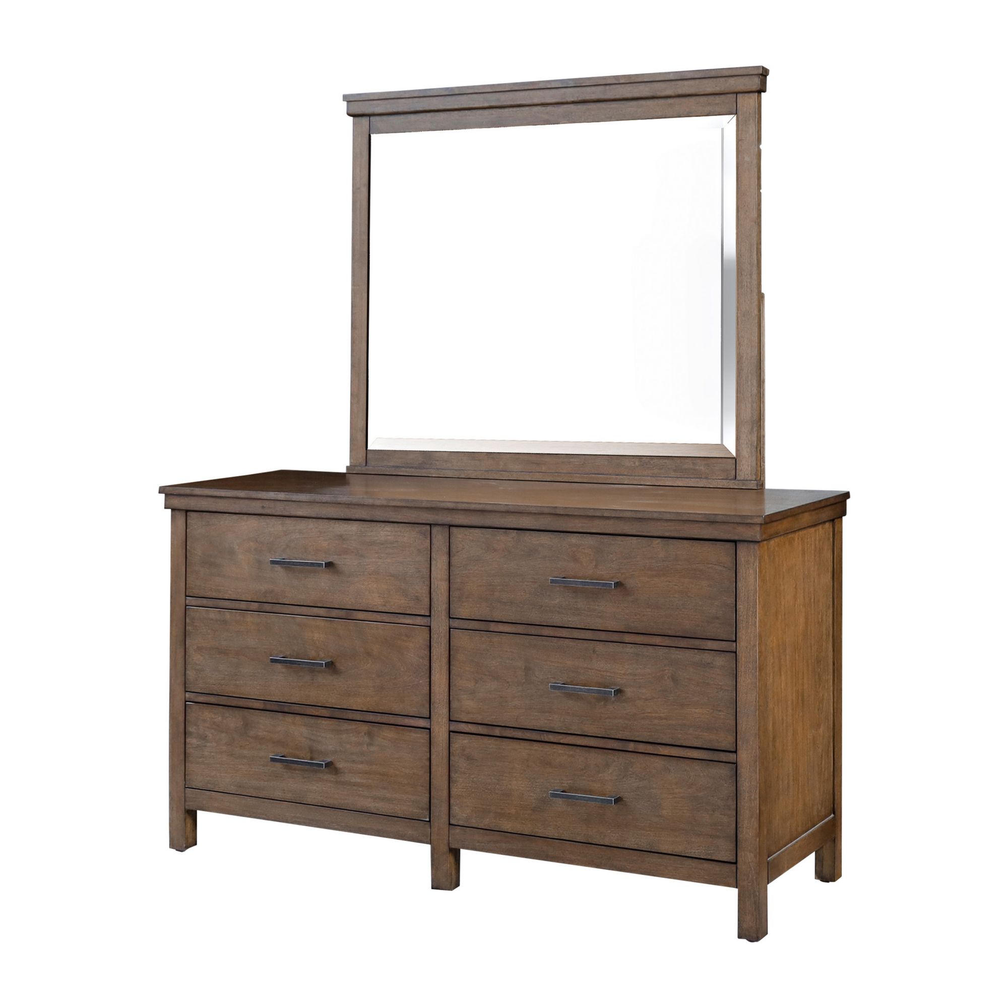 (27 Items)Ludlow 6-Drawer Dresser with Mirror Set - Medium Brown Wood Finish