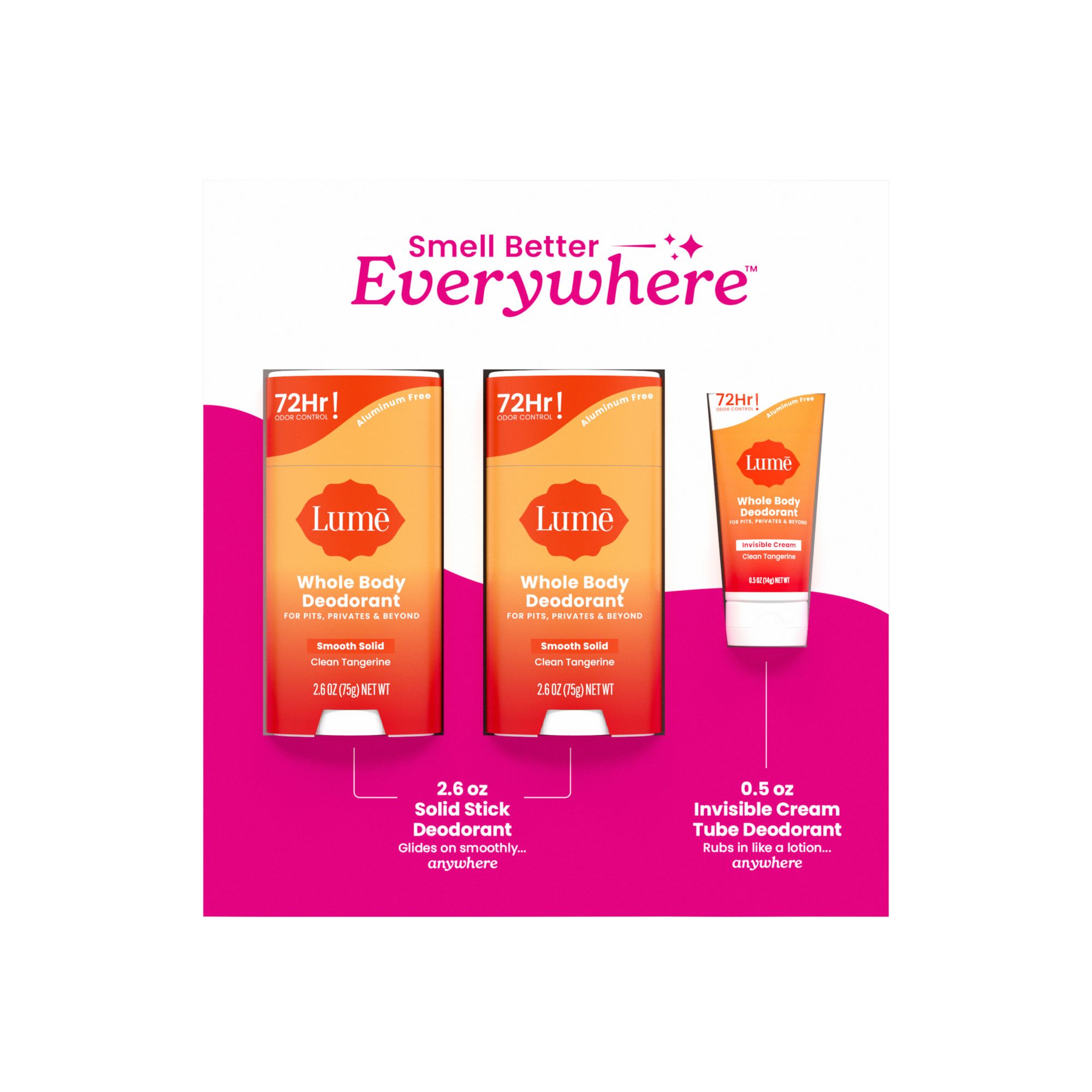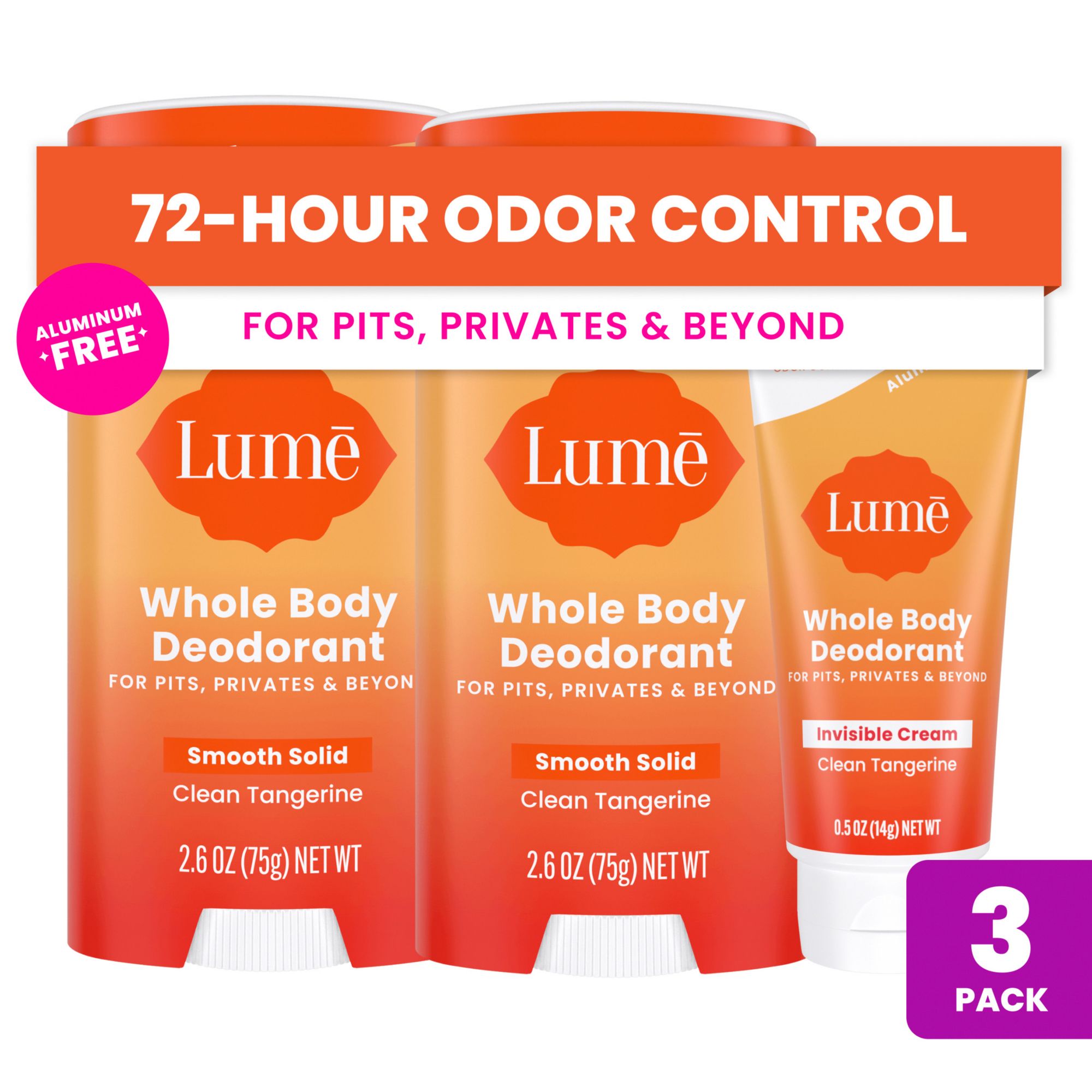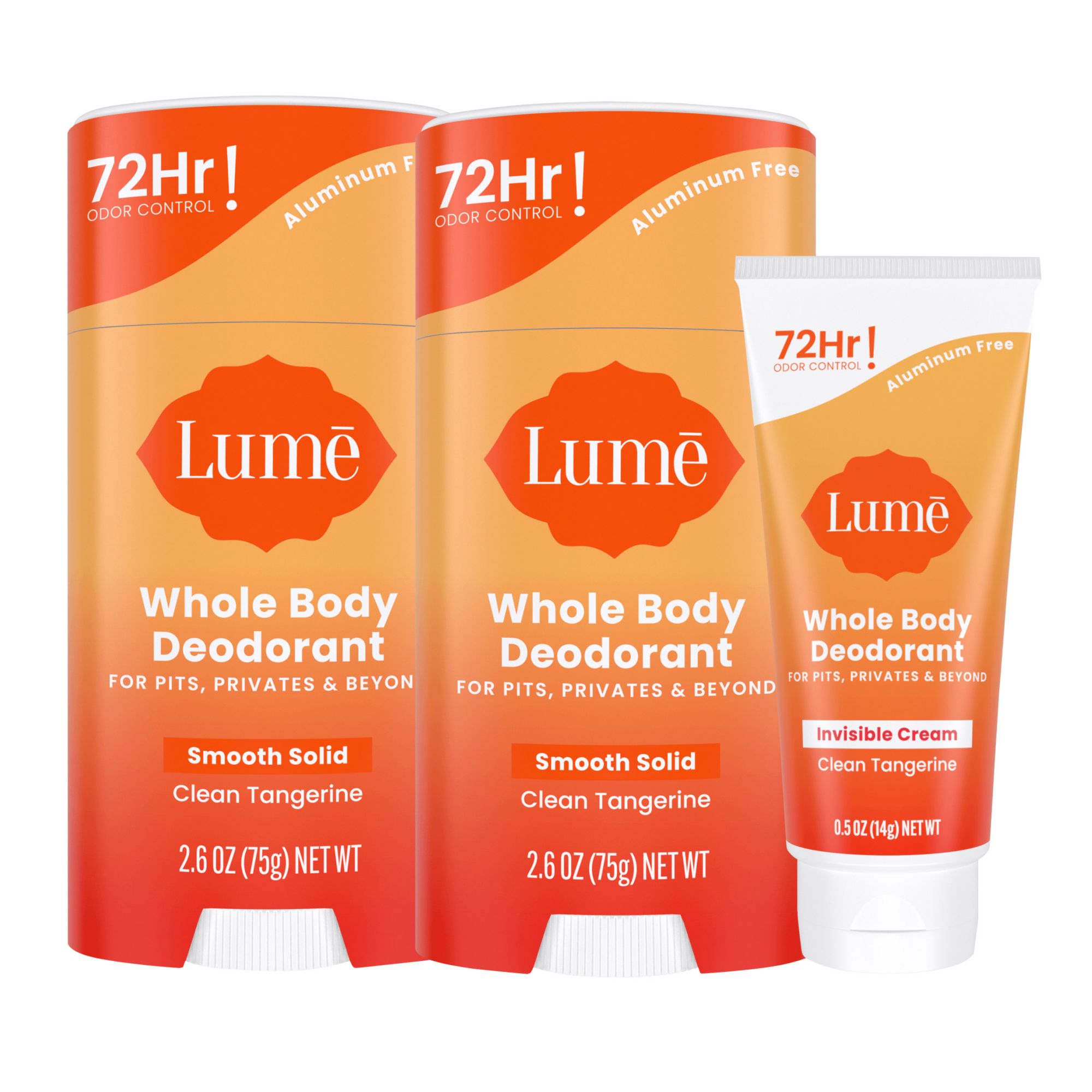Lume Whole Body Deodorant, Aluminum Free, Solid Sticks, 2 pk./2.6 oz. + Cream Deodorant Tube, 0.5 oz.