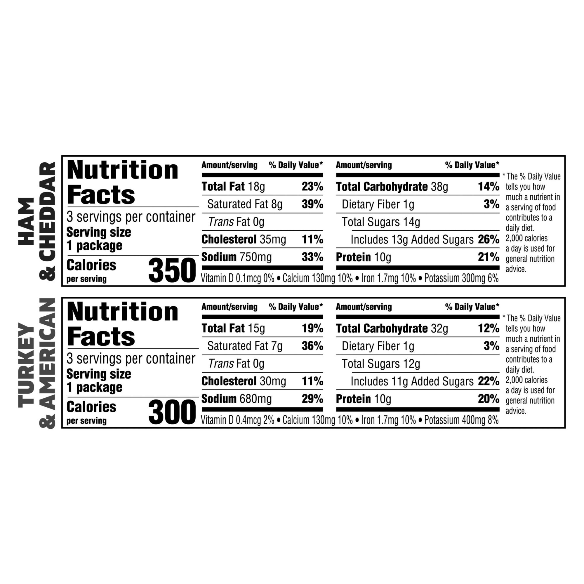 Variety 6 ct. pack with 3 Lunchables Ham & Cheddar with Vanilla Creme Cookies and 3 Turkey & American with Chocolate Creme Cookies