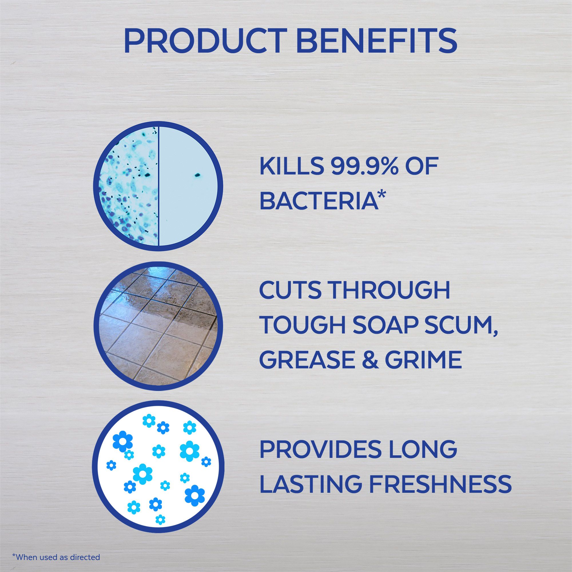 Includes 32 oz. spray bottle with 144 oz. refill Kills 99.9% of viruses and bacteria Cuts through tough grease and soap scum Provides long lasting freshness Can be used on hard, non-porous surfaces in the kitchen, bathroom and other areas of the home Dilute in water for use on large surfaces, like floors Fresh Scent: Lemon Breeze