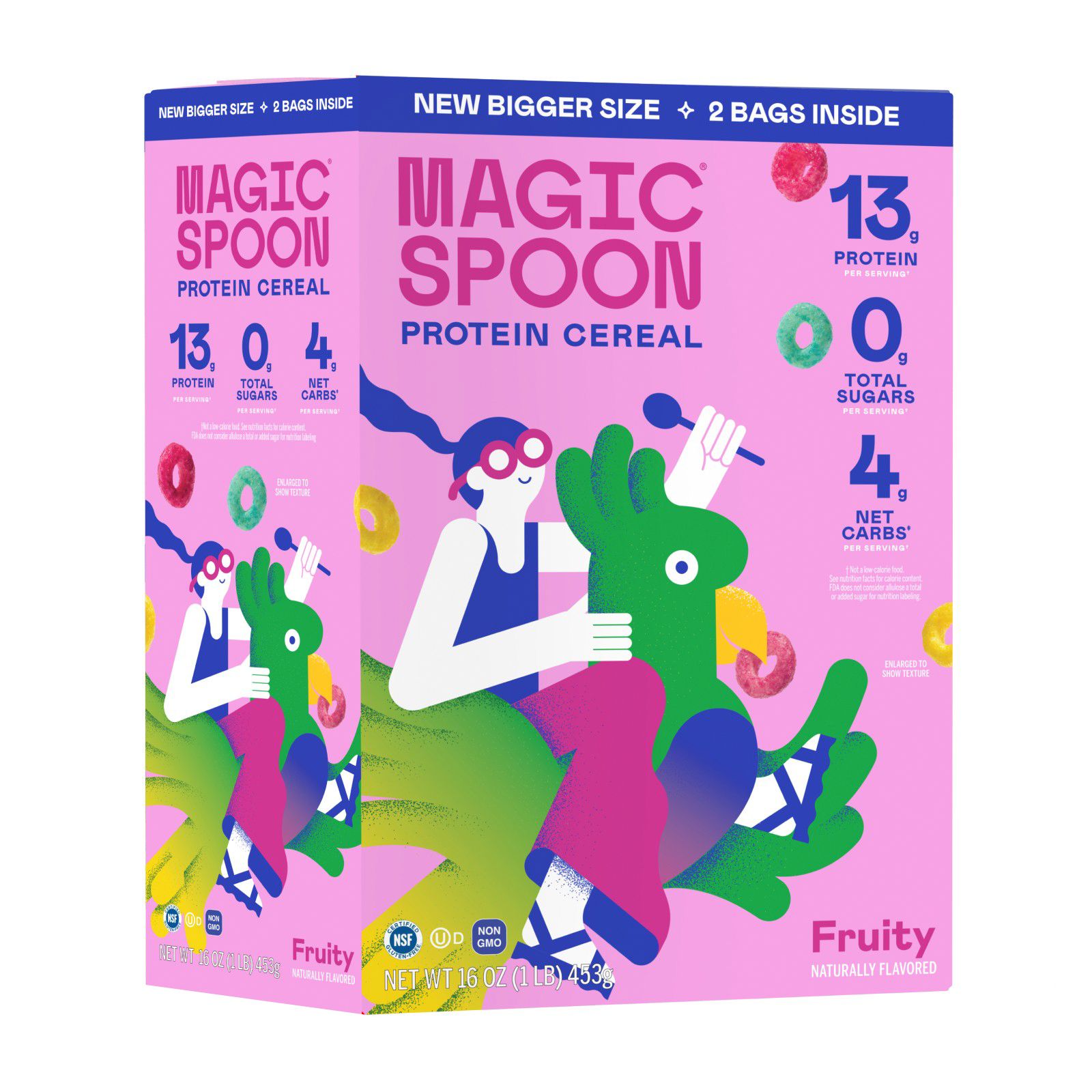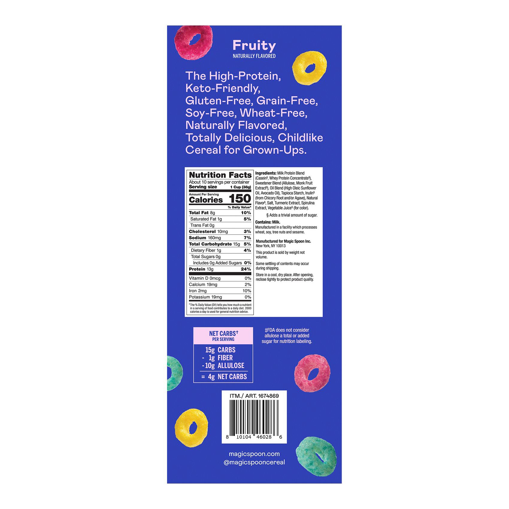 Meet Magic Spoon: Magic Spoon looks and tastes like your favorite classic cereals, with high protein and 0g sugar. A great wholesome option! Includes one 14 oz. box of Fruity