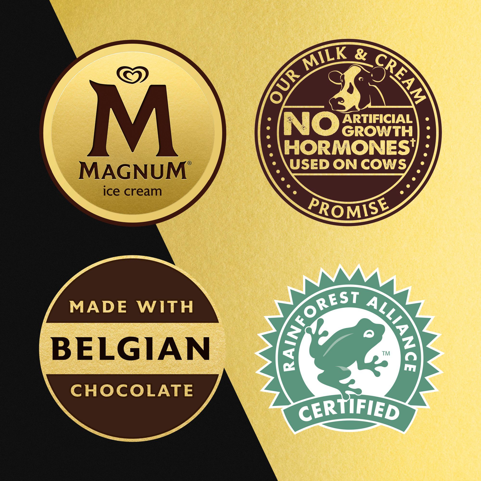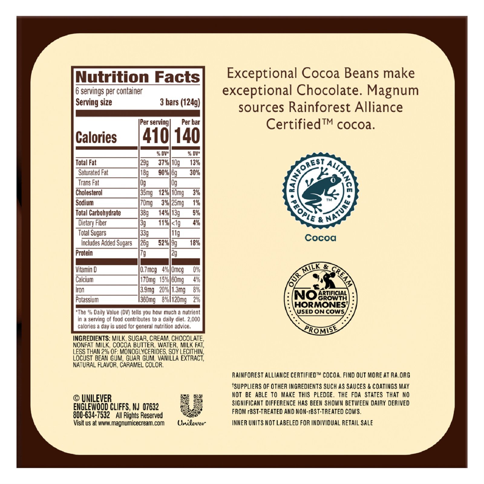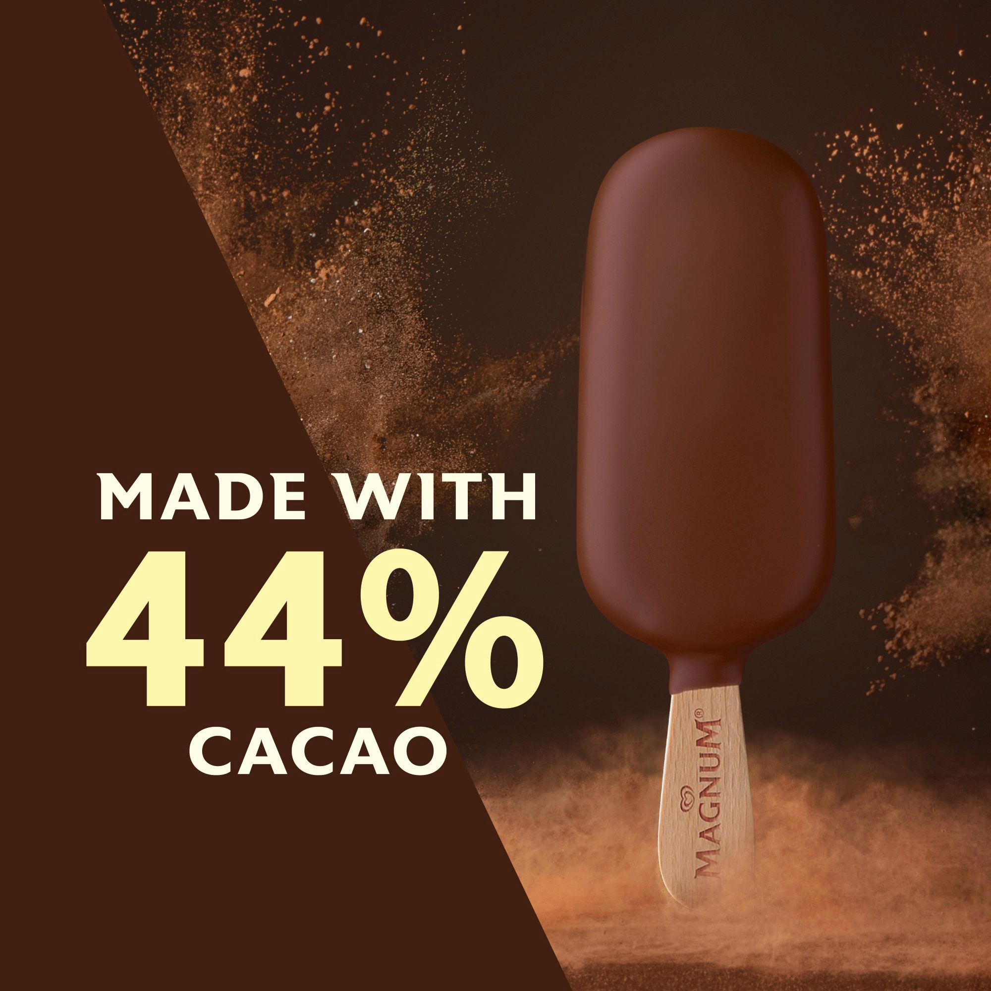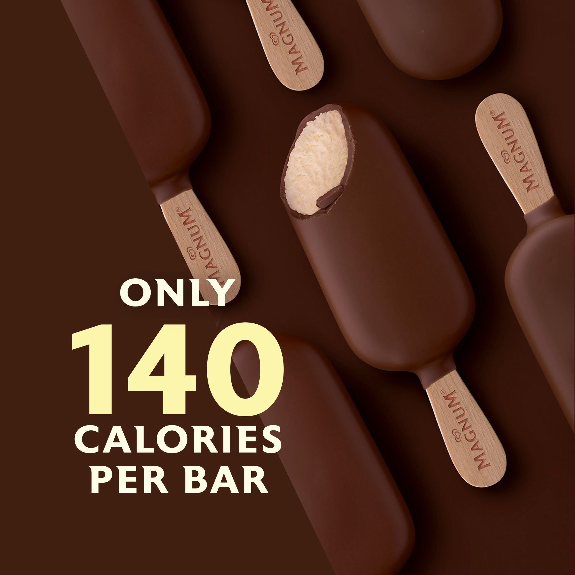 With 45% Cacao, Magnum Mini Classic is an indulgent ice cream bar Vanilla ice cream dipped in milk chocolate Magnum ice cream is made with Belgian chocolate The cocoa used in these ice cream bars comes from Rainforest Alliance Certified farms Each ice cream bar is creamy, decadent and the perfect size for a snack or dessert Certified kosher ice cream bar