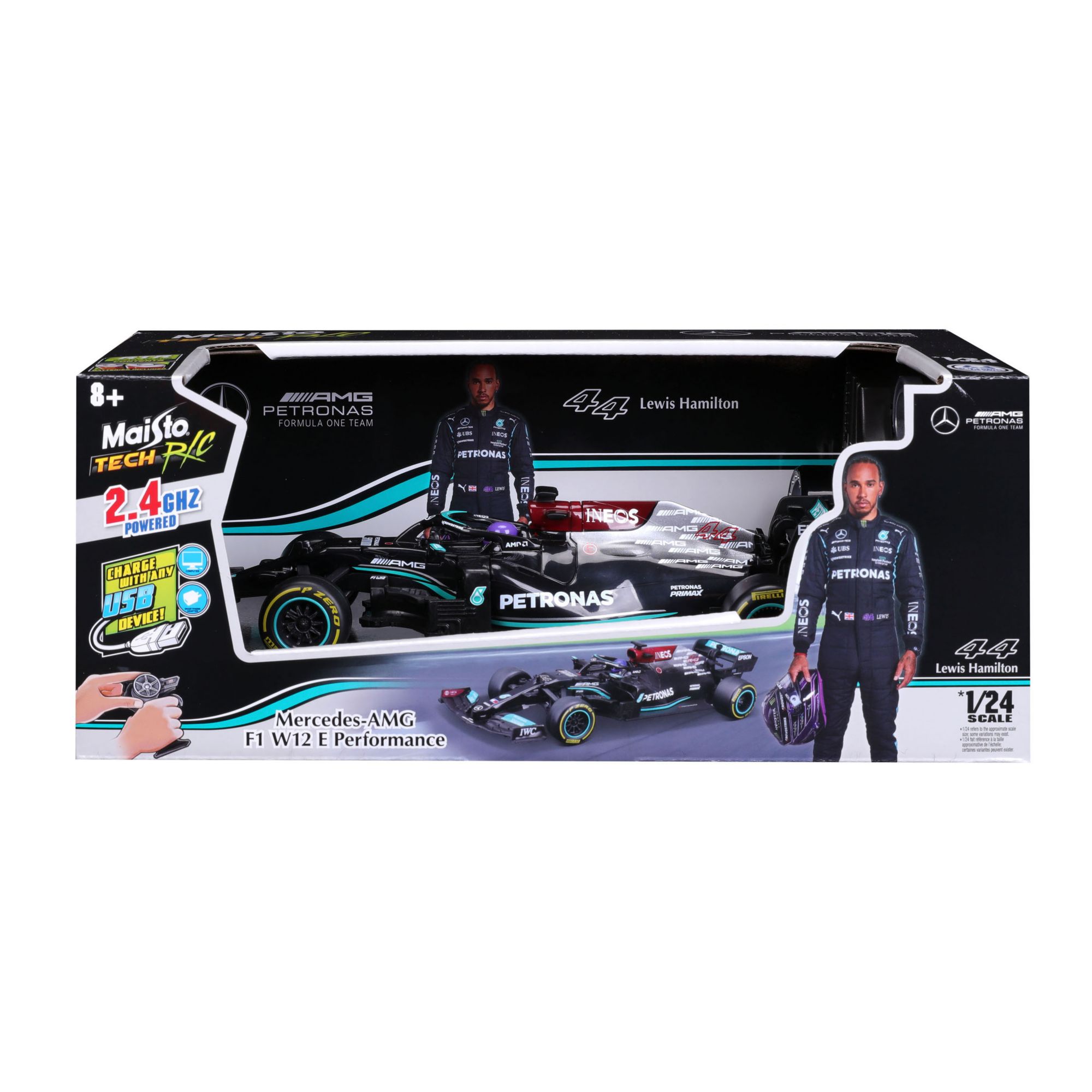 1:24 Scale full-function radio control vehicle team Mercedes. Take control and race just like the real thing.