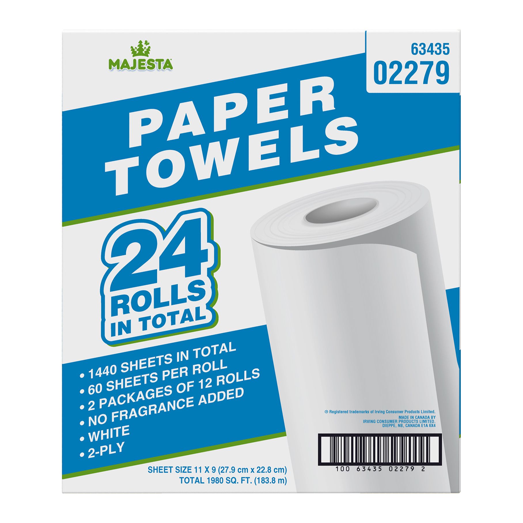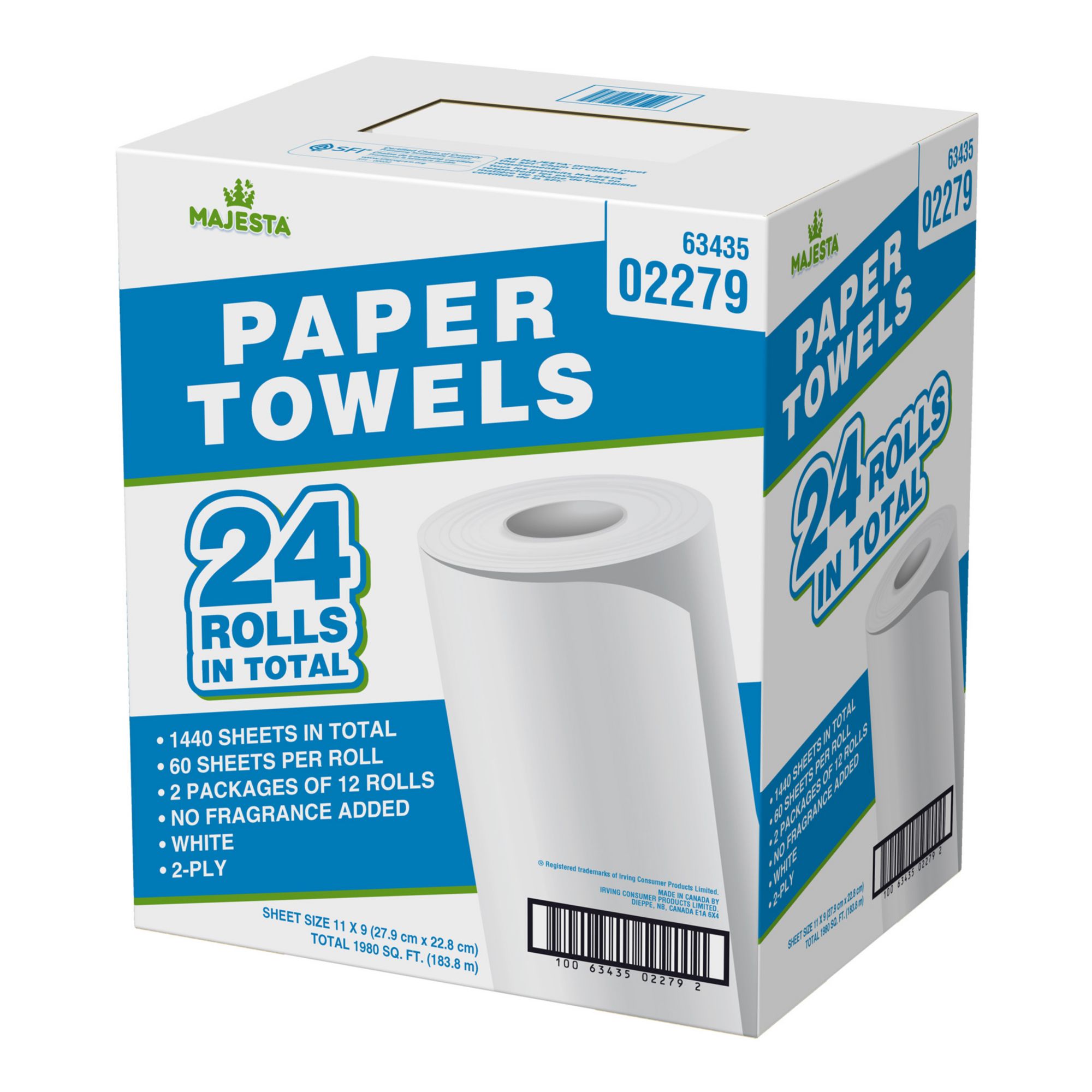 These Majesta jumbo size paper towels are strong and absorbent. These paper towels are made in Canada. This pack includes 24 jumbo rolls of Majesta paper towels.