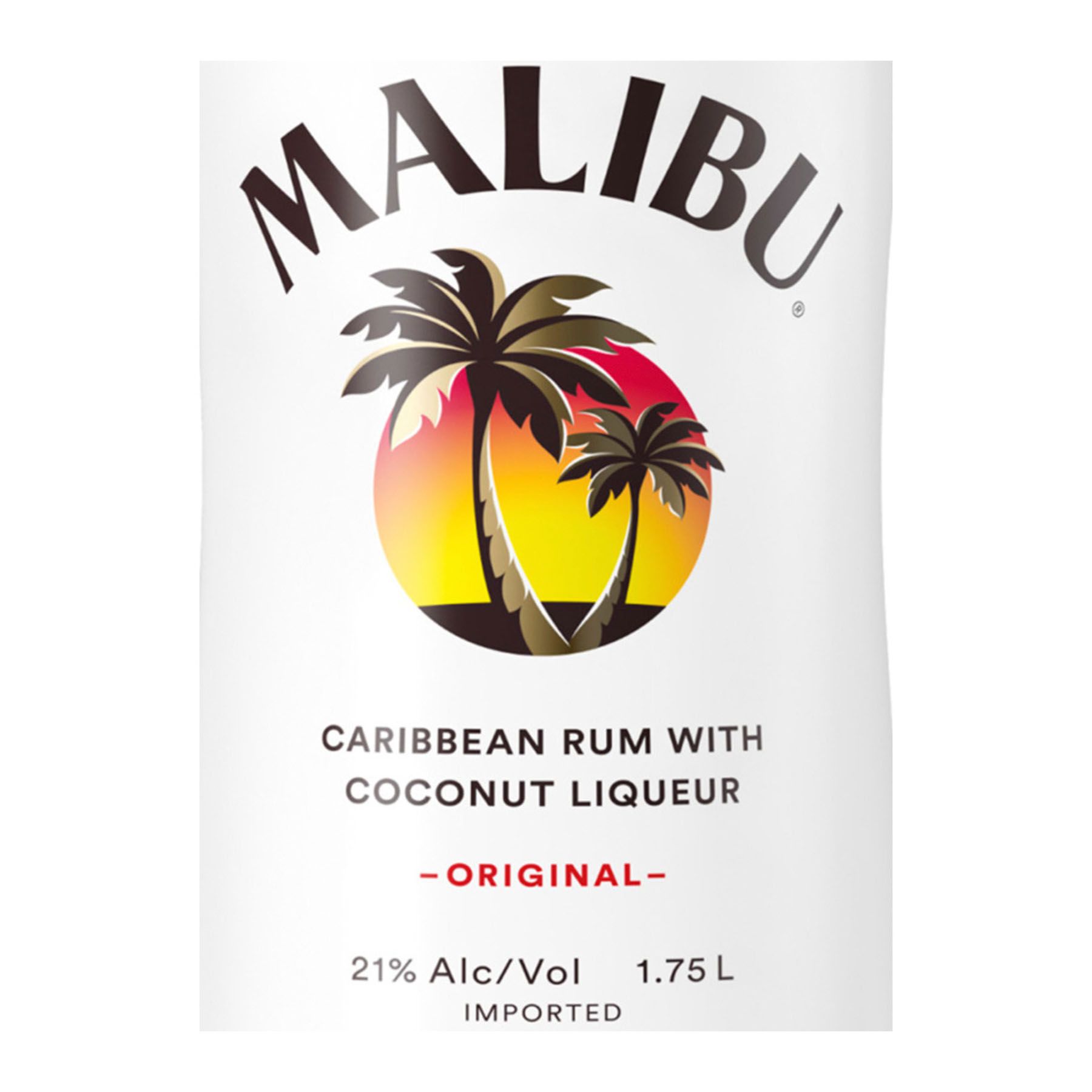 Malibu Original is the best-selling coconut-flavored rum in the world, delivering a smooth and sweet flavor that complements all your favorite tropical cocktails. This rich Caribbean rum is aged in oak barrels for two years to develop its complex, sweet flavor. The recipe has basically remained unchanged for more than 100 years and is crafted with Caribbean sugarcane and pure water. As the first sip touches your taste buds, you will feel as though you're transported to a tropical beach on the islands where you're watching the palm trees sway in the breeze. Try Malibu Original in a number of cocktails. Blend it with fresh strawberries for a flavorful daiquiri or shake with orange juice and grenadine to enjoy a fruity Caribbean Sunrise. Malibu Original is also delicious on its own or mixed with cranberry juice or cola. Don't forget to sample the spirit in a pina colada, a drink Malibu had in mind when its Caribbean rum was originally crafted.