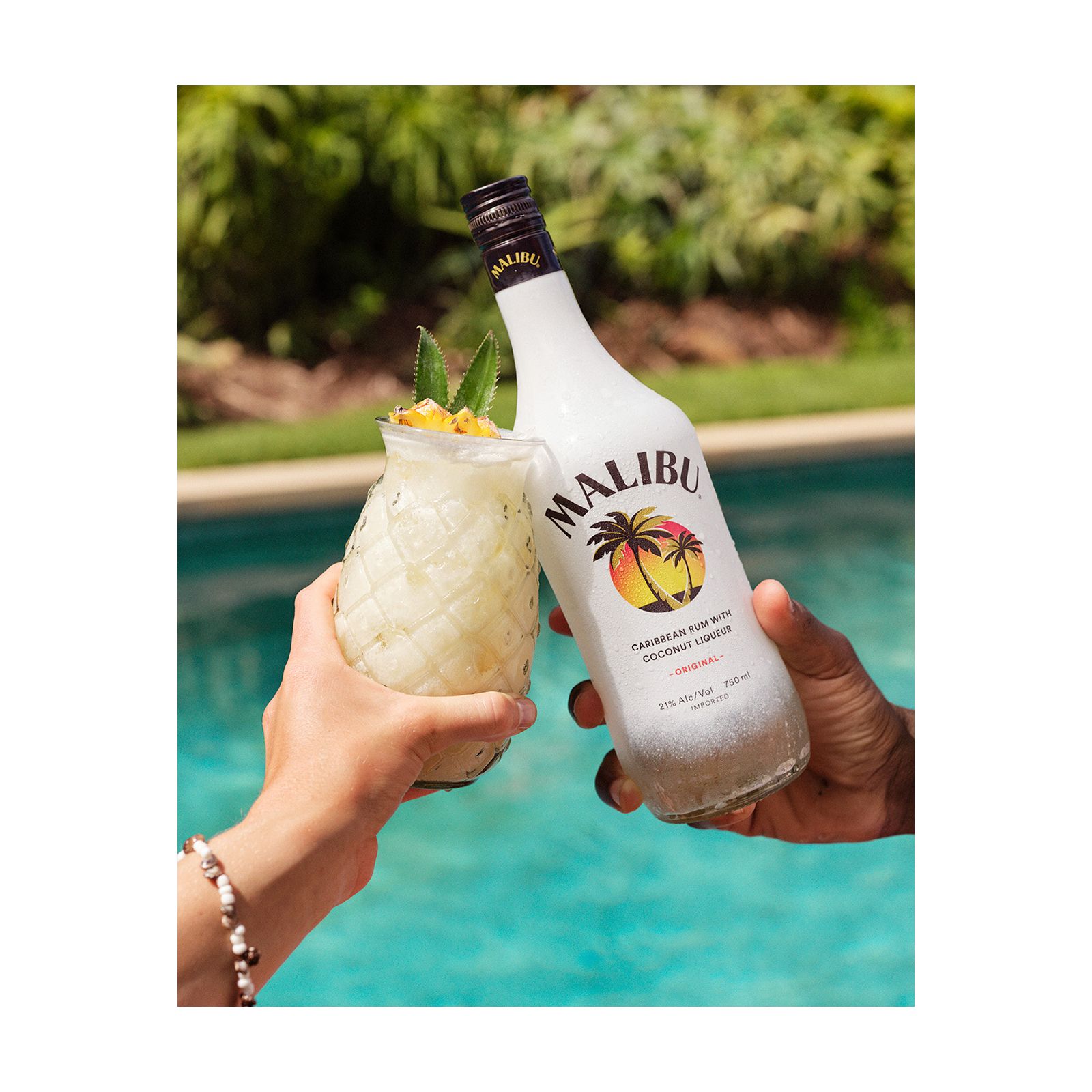 Malibu is one of the world's leading flavored rum spirits, delivering a smooth and sweet taste that complements all your favorite refreshing cocktails. Savor the delightful fusion of carefully aged white rum and coconut liqueur, expertly blended to create a luscious and exotic flavor profile. Whether you're lounging by the pool, hosting a beach party, or simply unwinding after a long day, Malibu is your go-to companion for moments of relaxation and celebration. Blend this liqueur with fresh strawberries and ice for a flavorful Strawberry Daiquiri, shake with orange juice and grenadine to enjoy a fruity Caribbean Sunrise, or keep things simple and try Malibu mixed with cranberry juice or cola. Don't forget to sample the liquor in a Pina Coladaathis iconic cocktail is the ideal way to enjoy Malibu and experience its sweet and refreshing taste. Enjoy Responsibly.