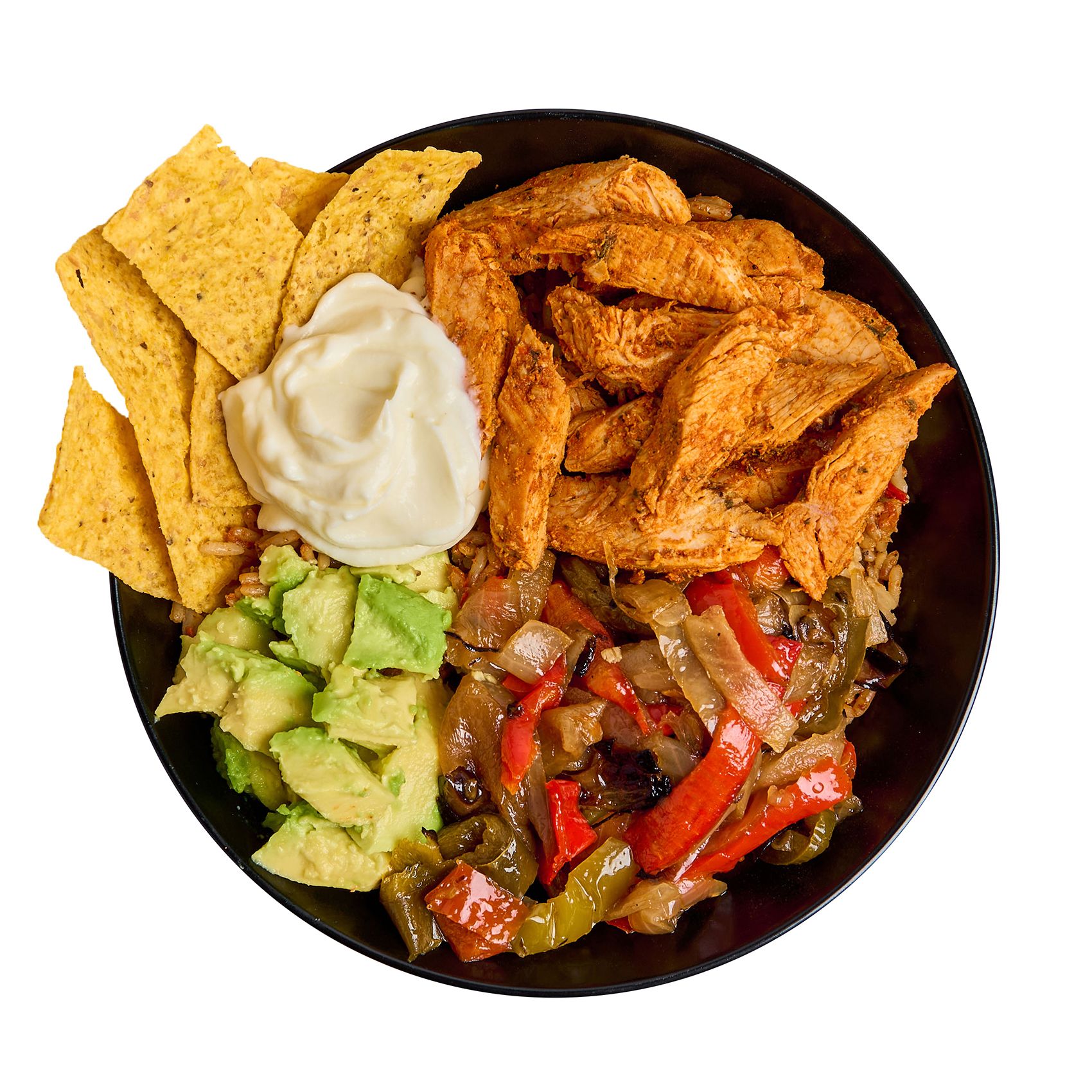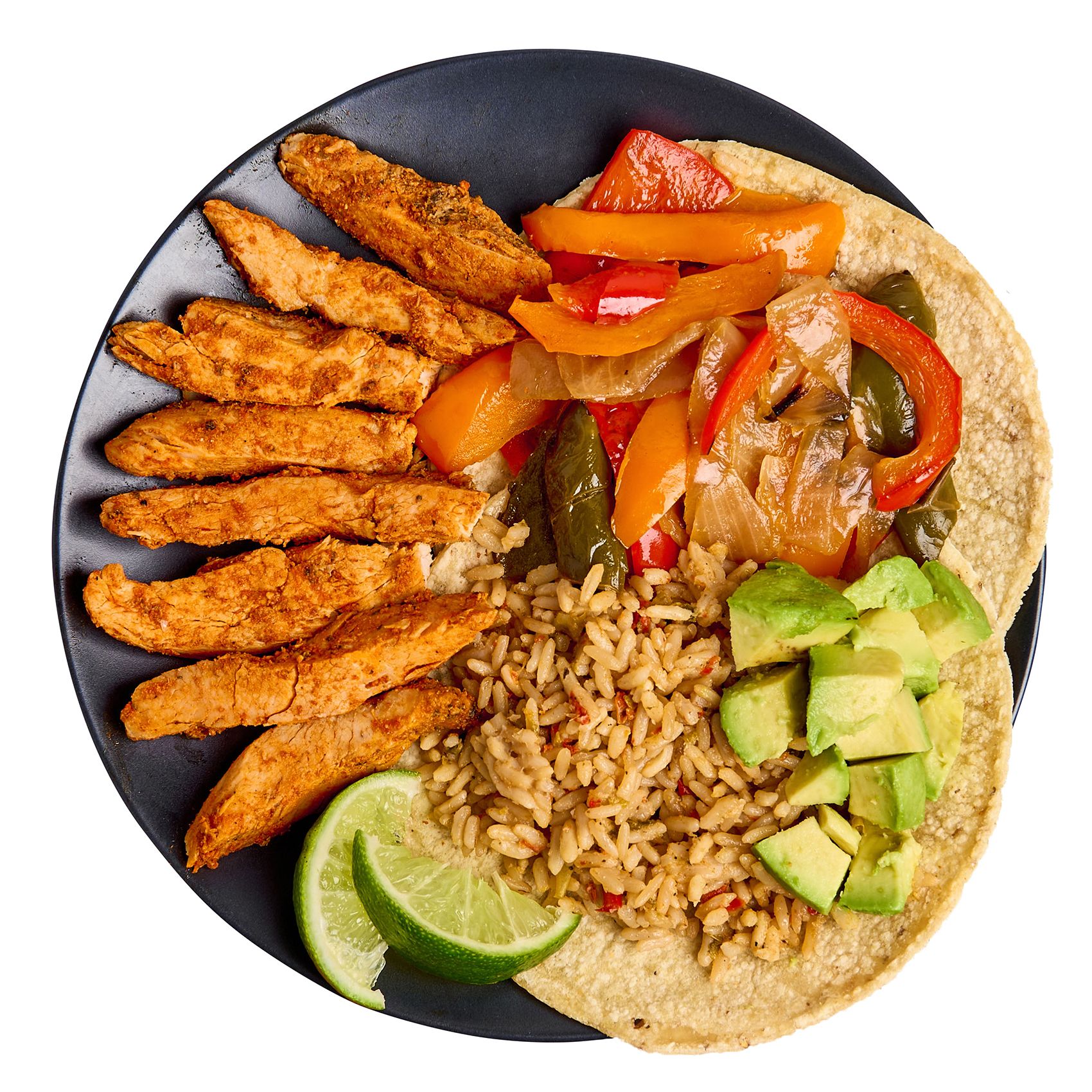 Ingredients: Oven Roasted Chicken Breast Strips: Chicken Breast Strips (Boneless, Skinless Chicken Breast, Water, Salt), Canola Oil, Salt, Granulated Garlic, Spanish Paprika, Granulated Onion, Dried Parsley, Black Pepper, Oregano, Thyme. Fajita Seasoning: Salt, Spices, Paprika, Sugar, Dehydrated Garlic, And Silicon Dioxide Added To Prevent Caking.