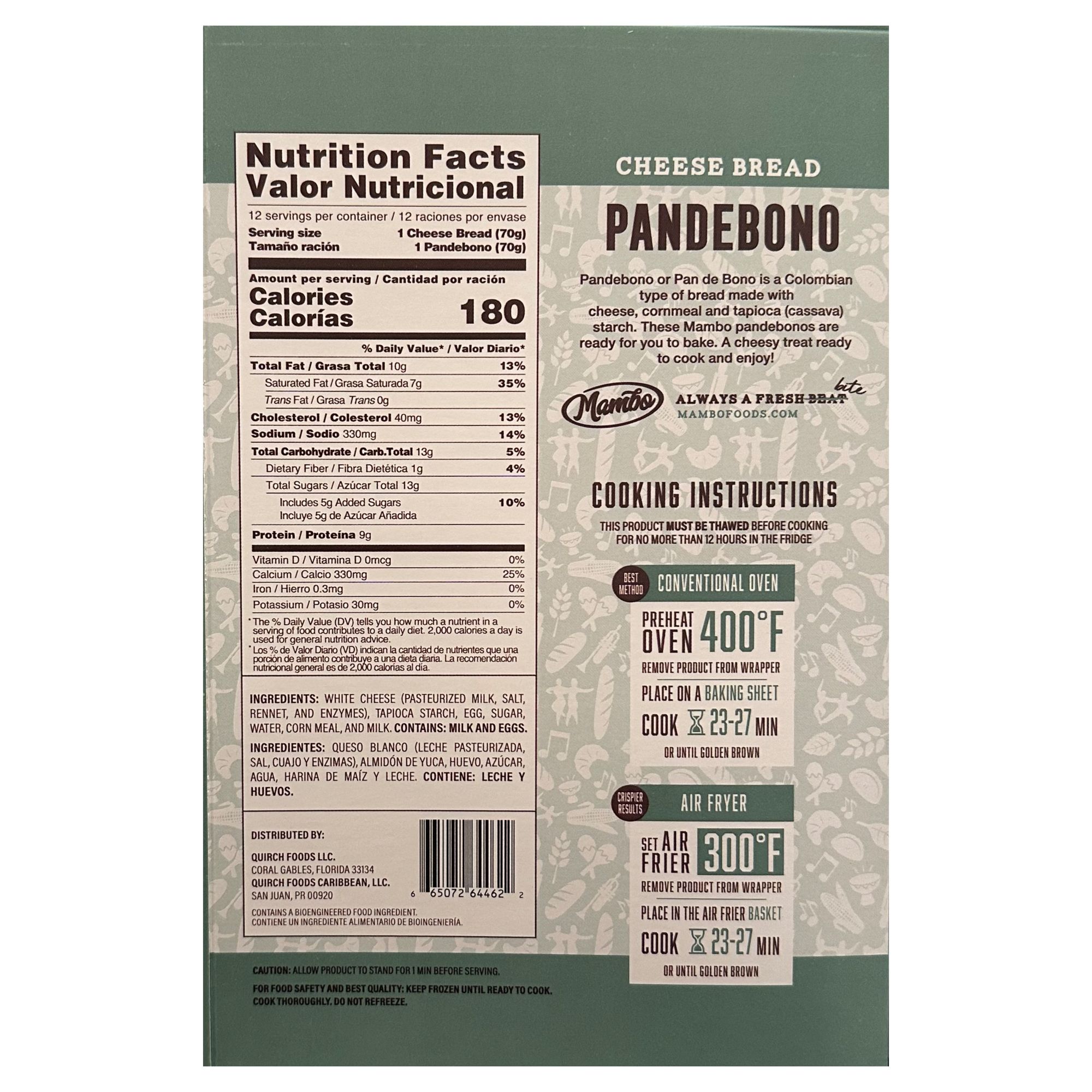 Pandebono is a Colombian type of bread made with cheese, tapioca (cassava) starch. The flavor profile and the perfect size makes this cheese bread roll the best companion for your meals, use it for any occasion. These Mambo Pandebono are ready for you to bake.