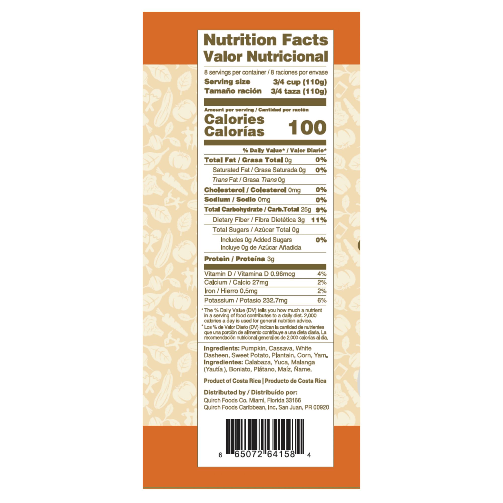 Mambo Sancocho is a combination of vegetables that are perfect for stews and soups. Frozen at their peak of freshness, these seven Hispanic kitchen staples: Pumpkin, Cassava, White Dasheen, Sweet Potato, Plantain, Corn, Yam, are washed, peeled and cut for your convenience. Traditional recipes are easier to prepare and enjoy when you don’t have to worry about cutting or peeling ingredients. Some call them Hispanic vegetables or viandas, or you can call them “a taste of homeâ€.