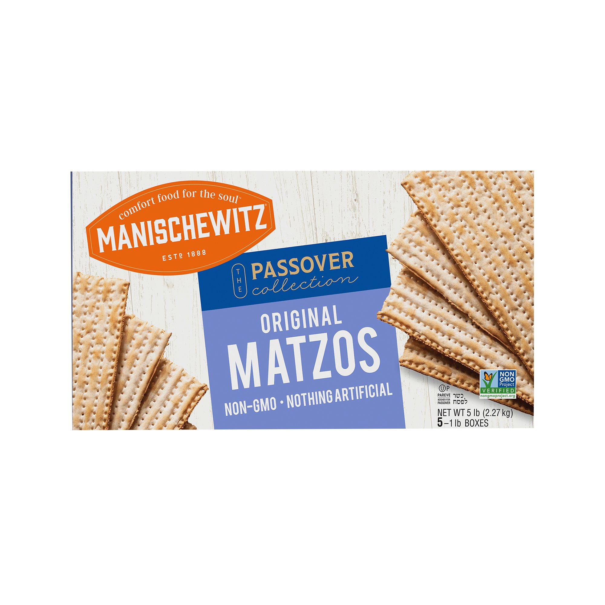 Manischewitz Unsalted Matzo is Kosher for Passover and all year round Great low fat snack Toast them for even more flavor Includes 5 lb. box of Manischewitz Unsalted Matzo