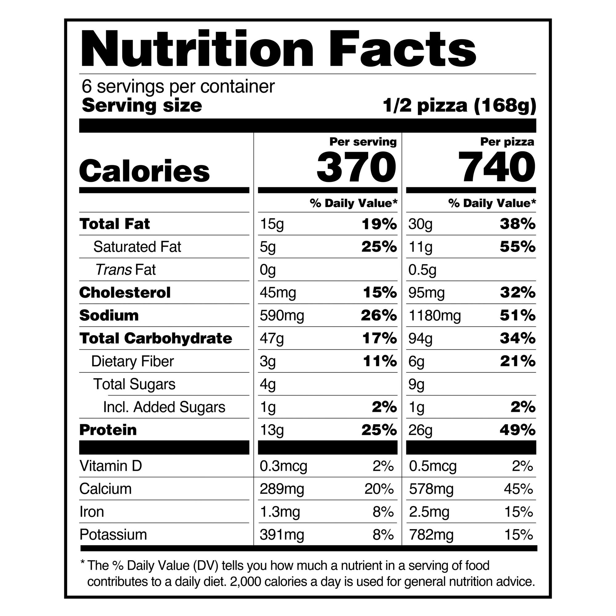 370 calories per 1/2 pizza