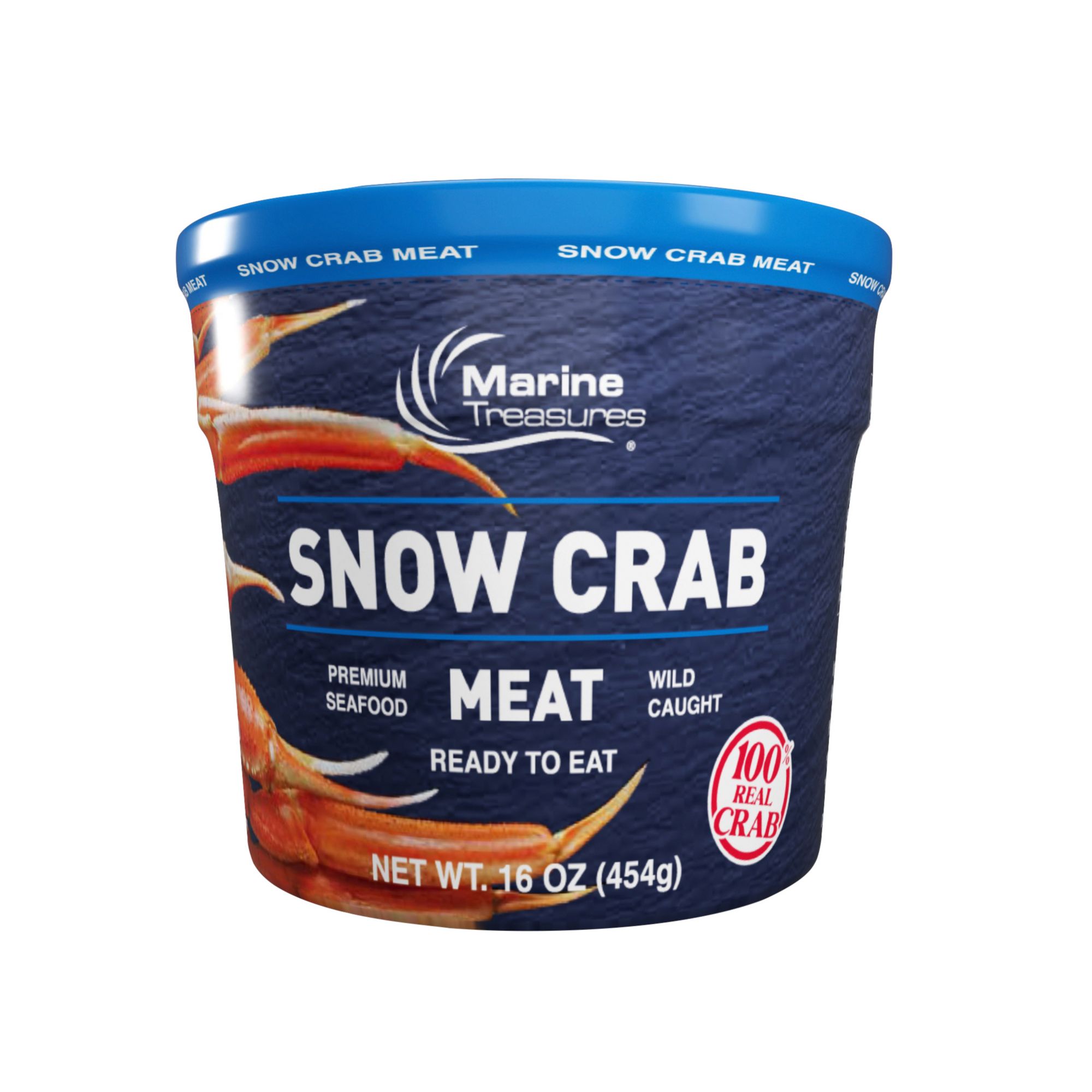 Marine Treasures Snow Crab Meat is fully cooked and pasteurized. It is carefully handpicked meat from premium snow crab and the packaging contains a sealed tight pull top lid on the container. The Marine Treasures snow crab meat can be used for a variety of applications, including snow crab rolls, toppings for your favorite cuisine or it can be used for ready to eat.