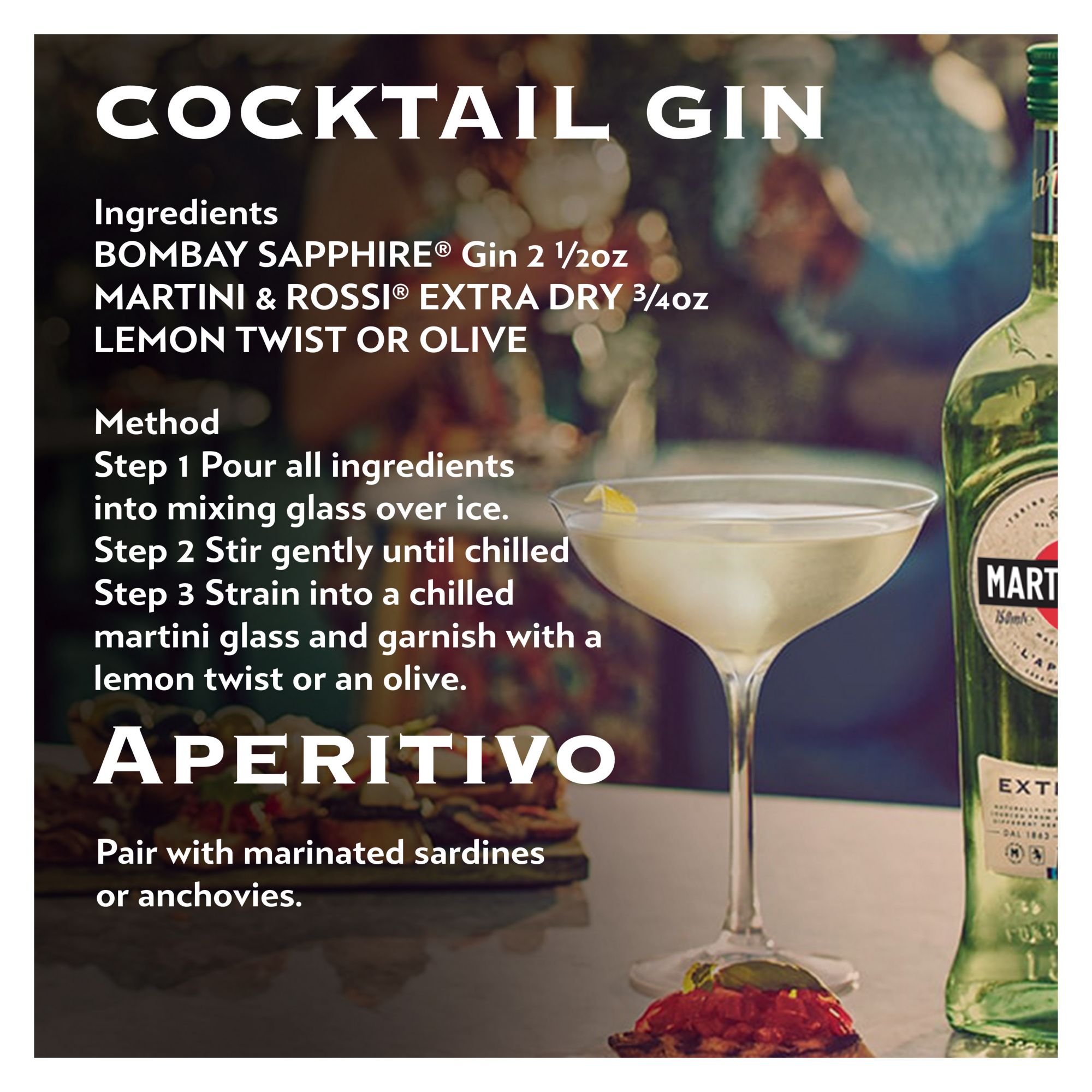 Martini & Rossi Extra Dry Vermouth Cocktail Mixer is a dry white vermouth that owns up to its fashionable namesake for the authentically open-hearted drinker. This white vermouth captures the essence of the rare woods, herbs and citrus that makes up the secret recipe, crafted using hand-selected botanicals from across the world's gardens. Made with quality ingredients, this vermouth displays tart, violet-scented notes and a bright finish. Silver shimmering sardines taste Bellissimo with this cocktail mixer. You can also enjoy this fortified wine in creatively bold alcohol drinks like a Dry Martini & Rossi cocktail or Martini & Rossi and Tonic. Enjoy the moment with Martini & Rossi. Please Drink Responsibly.
